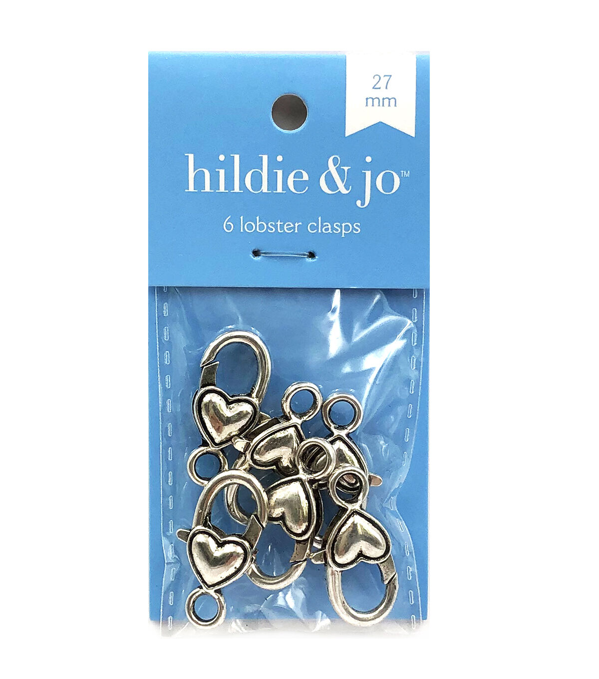 Add a lovely touch to your DIY jewelry creations with the hildie & jo Heart Lobster Clasps-Antique Silver. You can use these heart-shaped clasps to give a streamlined look and security to your keychains, beading projects, bracelets and hanging crafts. This pack comes with six lobster clasps in a silver tone.