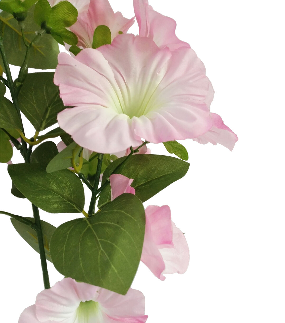 Give a chic makeover to your home decor with the Spring Pink Petunia Stem by Bloom Room. It is made of faux petunia flowers in a light pink hue and leaves in green. Team it with colorful chrysanthemums, sold separately, in a long glass vase and display them on a side table or the mantel.