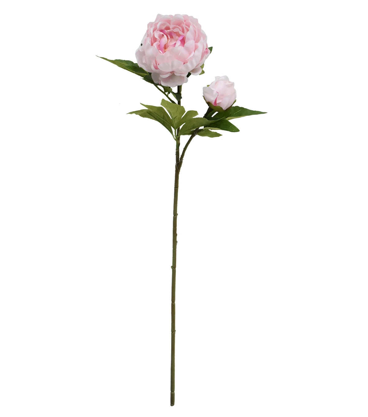Give a refreshing makeover to your living room with the Spring Light Pink Peony Stem by Bloom Room. This faux floral stem bears a full-bloomed peony and a bud in pink along with green leaves. Pop it into a pitcher vase along with faux floral stems in contrasting shades to put together a beautiful seasonal display.
