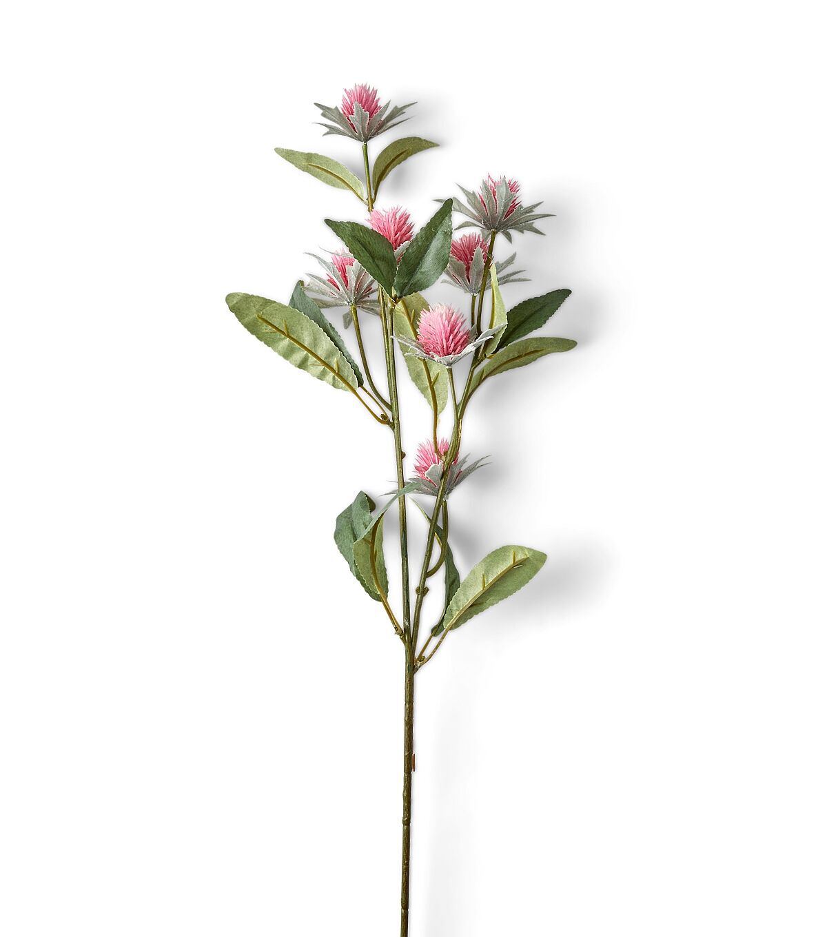 Sweet and elegant, the Summer Pink Thistle Stem by Bloom Room is a visual treat. This faux floral stem bears genuine-looking thistle flowers in pink and green leaves. You can display it as is in a clear glass vase on any table in your home. It will also make a great addition to a summer wedding bouquet or a special seasonal mantel arrangement.