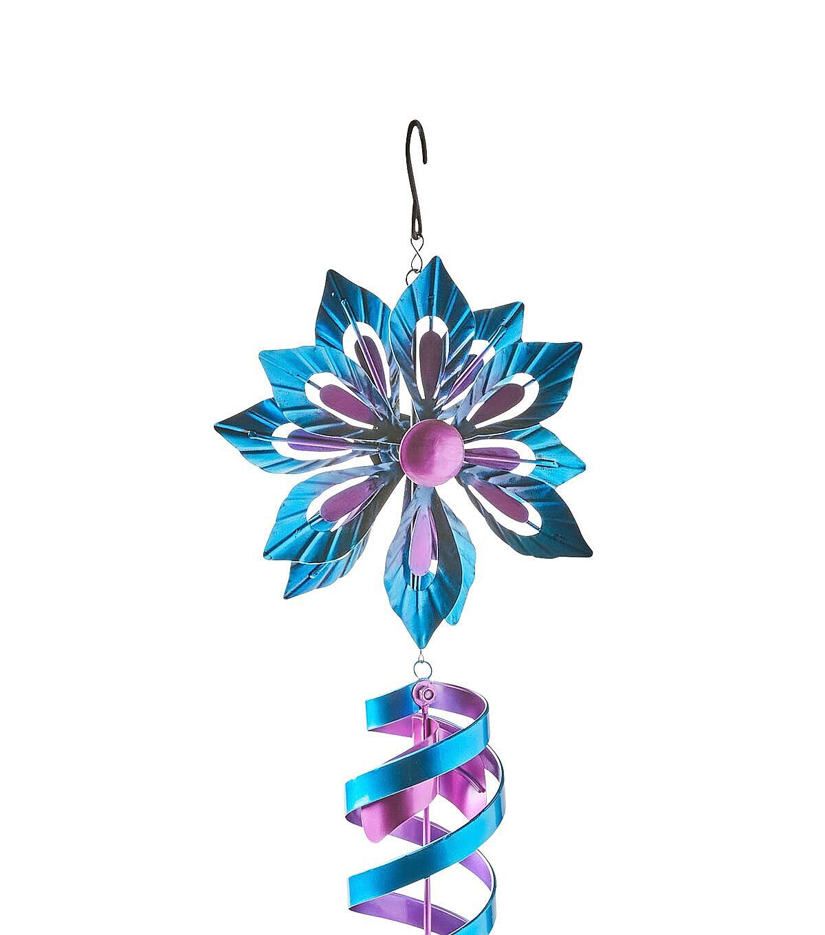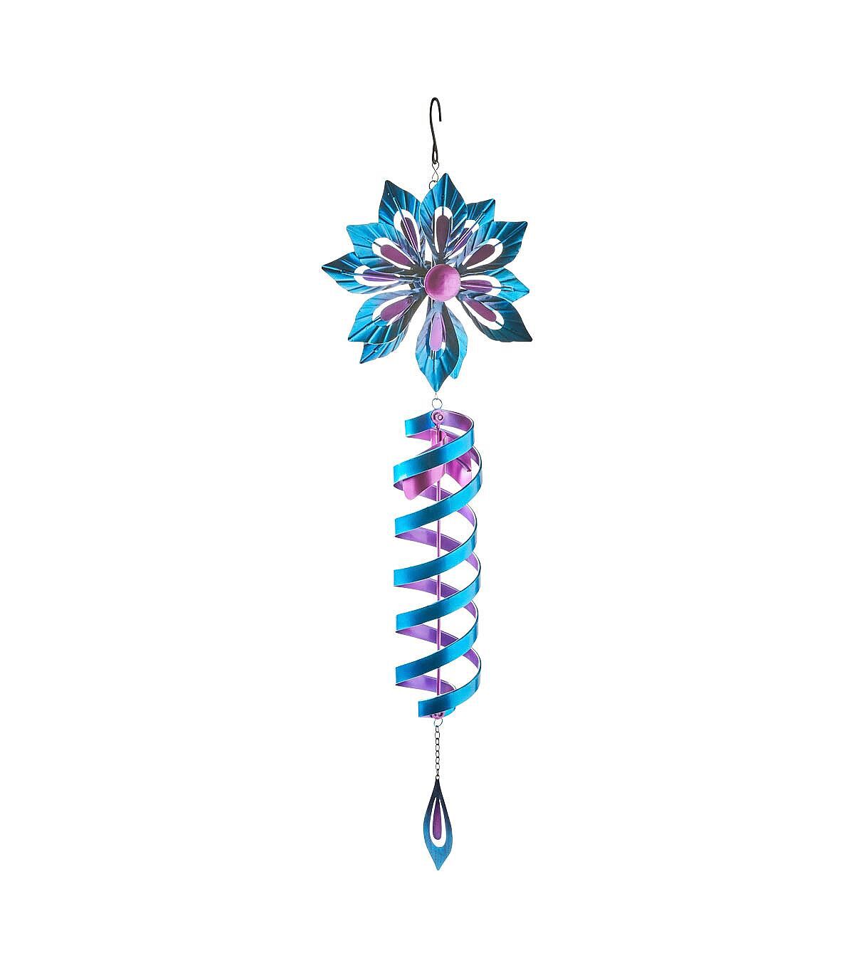 Add an interesting look to your outdoor space this season with the Spring Blue Iron Flower Spinner Windchime by Place & Time. Crafted with a cutout flower-shaped accent flaunting lovely shades, this spinner wind chime looks beautiful and will make your decor stand out. You can display it on the balcony, porch or by a window.