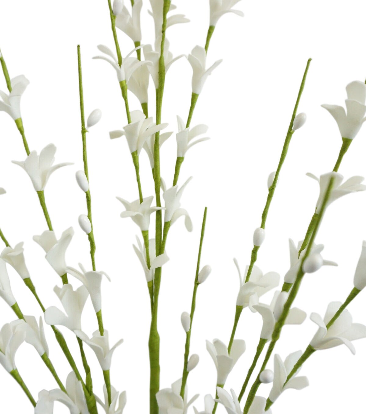 The Spring White Forsythia Stem by Bloom Room will perfectly complement your minimalist home decor. This faux stem is made of white forsythia flowers. You can showcase it as is or pair it with colorful floral stems and greenery bushes to create a beautiful arrangement for the entryway or front porch.
