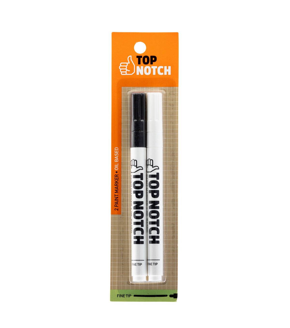 Beautify your craft projects with the Fine Tip Paint Markers by Top Notch. This pack contains two paint markers in black and white hues. They are designed with a fine tip and come with oil-based ink. You can use them for hand lettering, coloring small areas in a drawing and more. These markers will also make a great addition to the gift basket of a budding artist in your life.