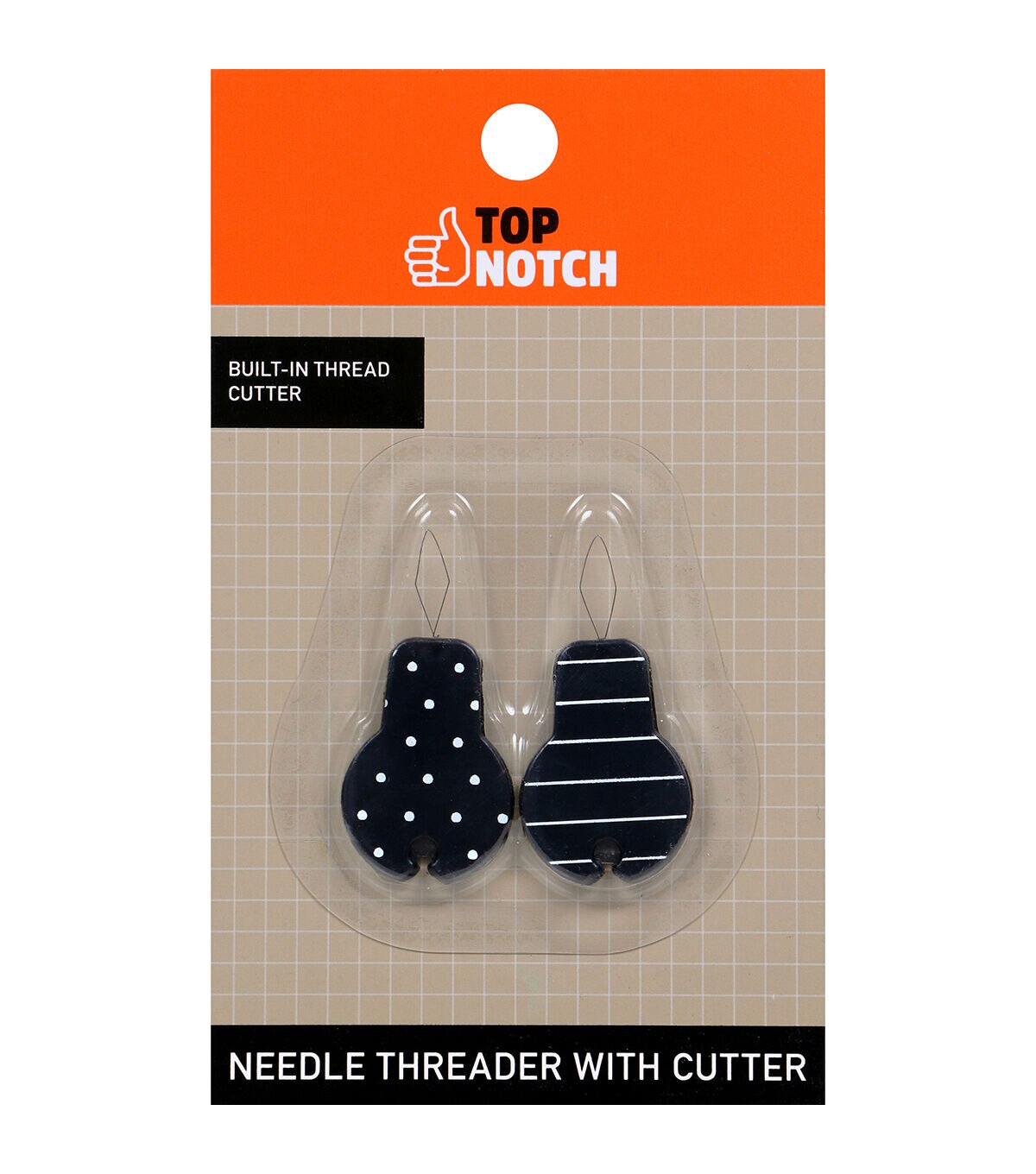 - The Top Notch Needle Threader with Cutter Set includes two sewing needle threaders that can be used with sewing thread, embroidery thread, or Persian yarn