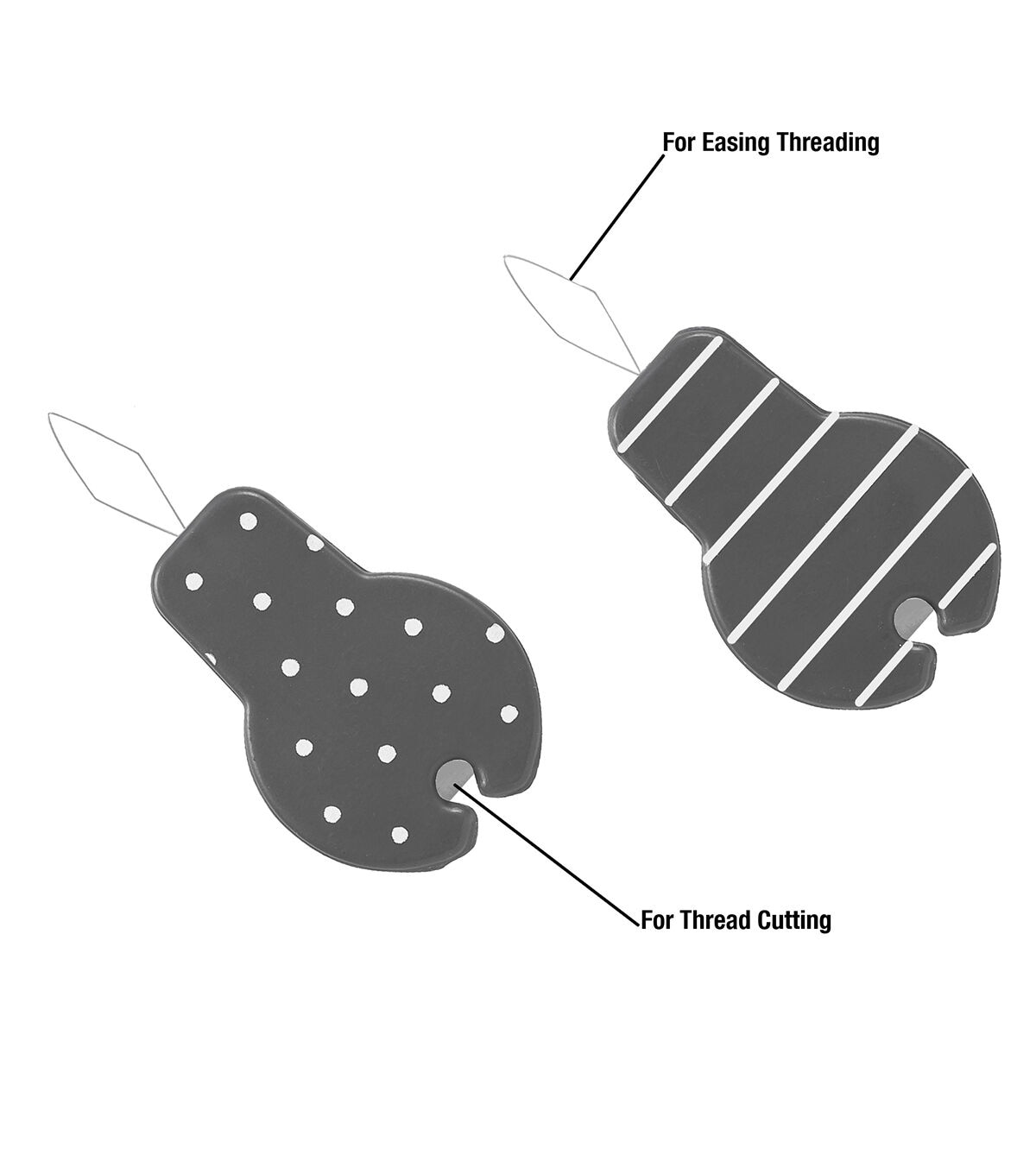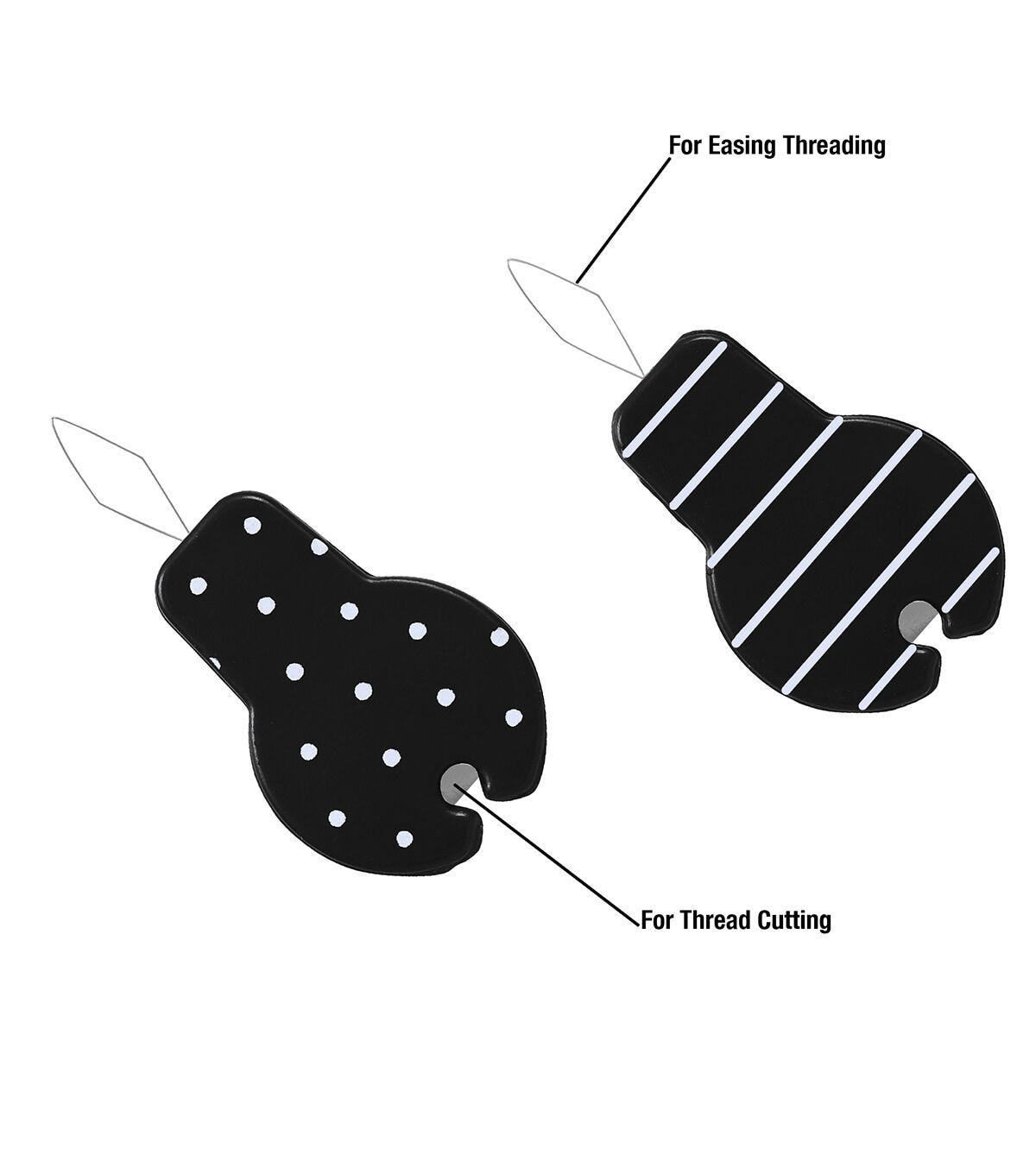 - Both threaders have a flat, rounded base for optimal maneuverability, making threading your needle quick and easy