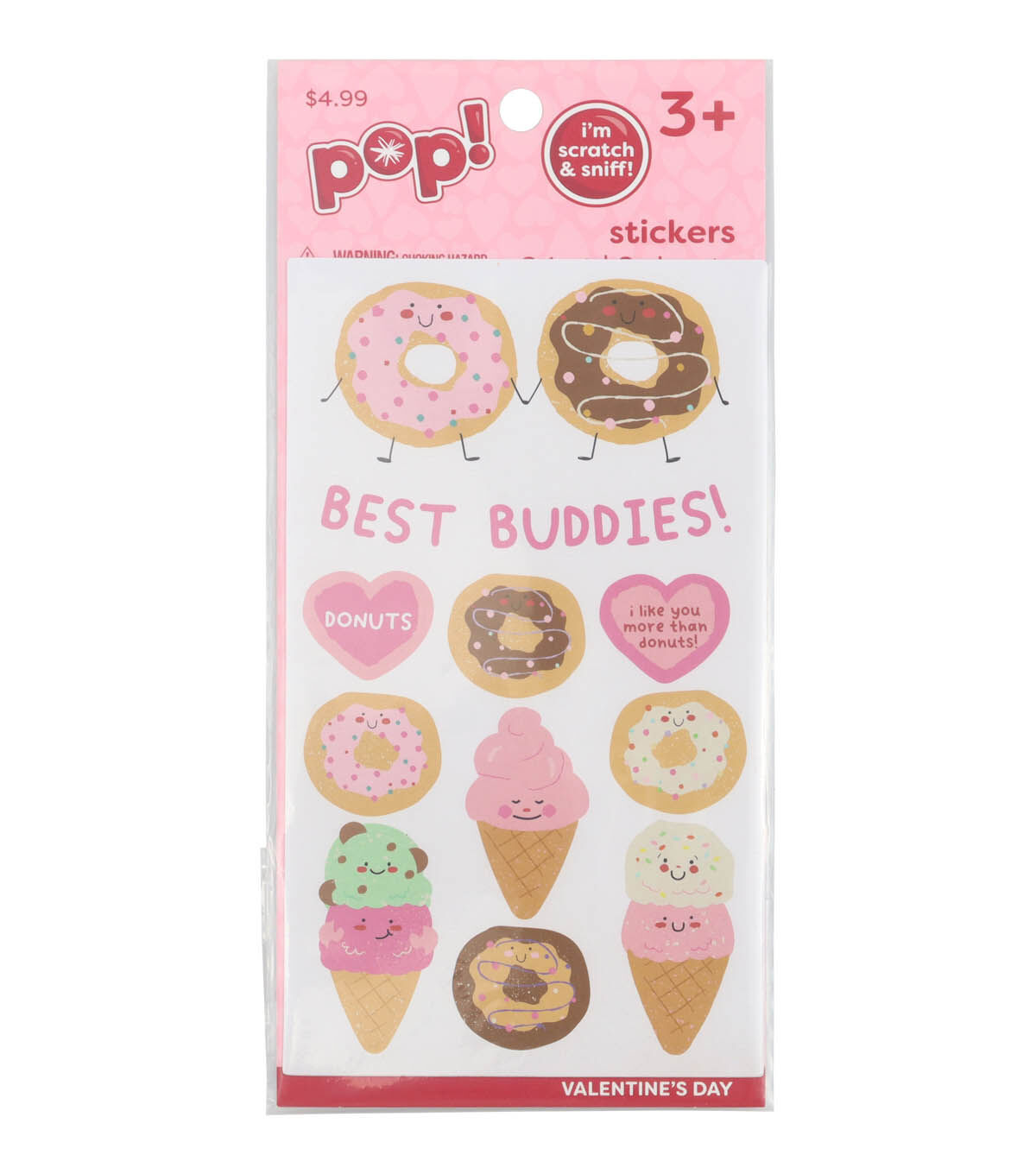 The Valentine's Day Cake Scratch & Sniff Stickers by POP! will make a great addition to your kid’s craft box. This pack includes two sheets of scratch-and-sniff stickers themed around desserts including donuts and ice cream. You can have your kids use them in their craft projects, scrapbooking and decorating handmade cards.