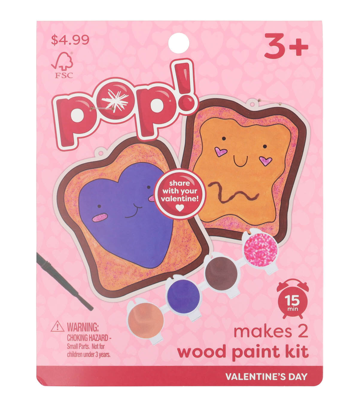 Let your little ones explore their creative side with the Valentine's Day Wood Pb & J Buddies Painting Kit by POP! This kit includes wooden cutouts shaped like two bread slices with peanut butter and jelly, paint pods and a brush. You kids can paint them in lovely shades provided. You can add a string to it and display them on the wall over their study table.