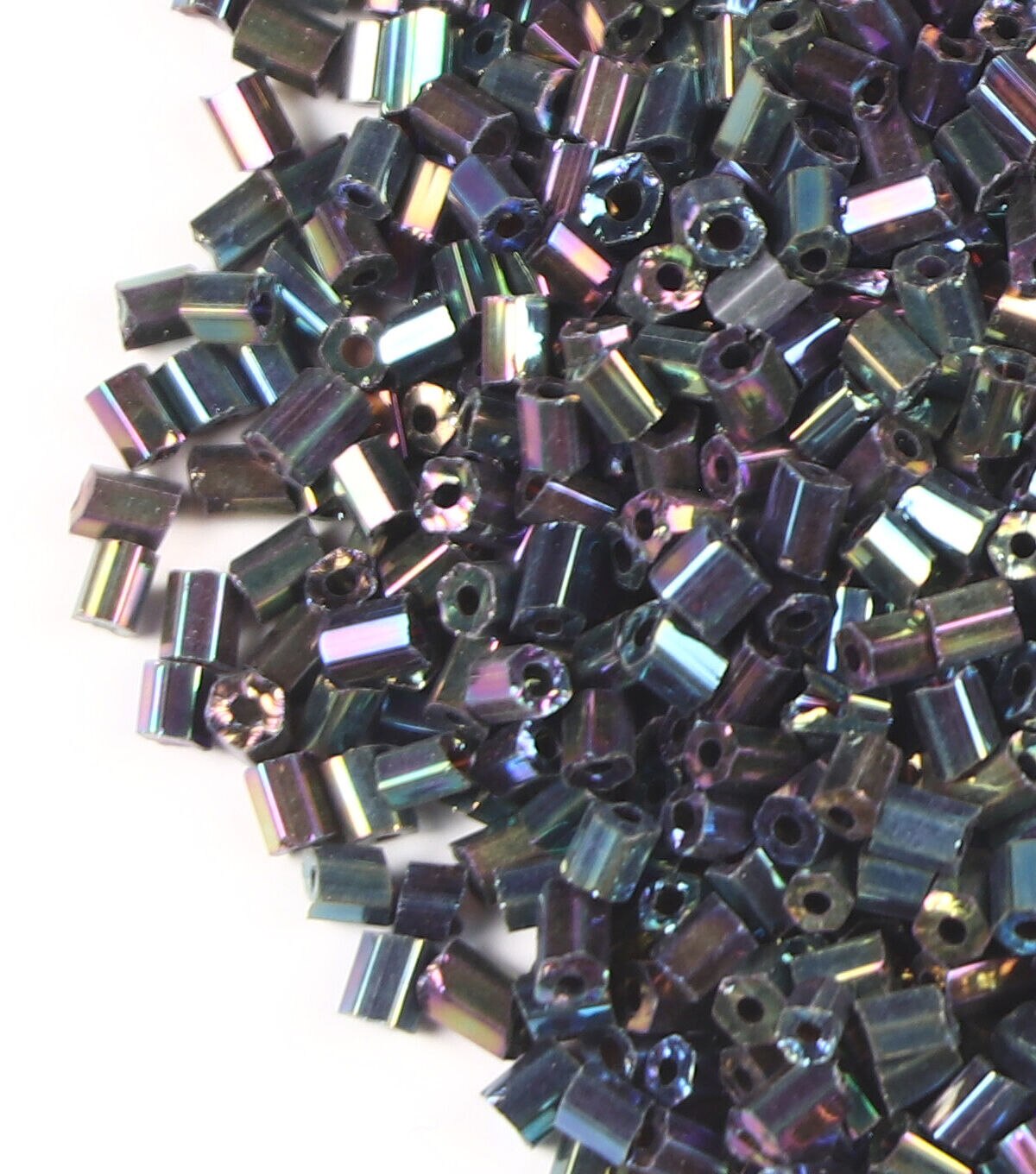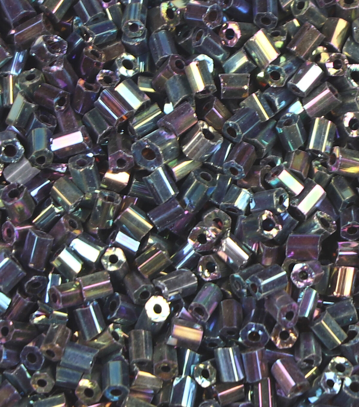 Add the hildie & jo 2 Cut Tiny Glass Bugle Beads with Rainbow Effect - Black to your jewelry-making supplies. Sporting a black shade and rainbow-hued finish, these tiny glass beads are versatile enough to be used alone as spacer beads or combined into long, beautiful strands. They can be mixed and matched with a variety of other beads, and with different cord colors and pendants. You can also incorporate them into needlework projects.