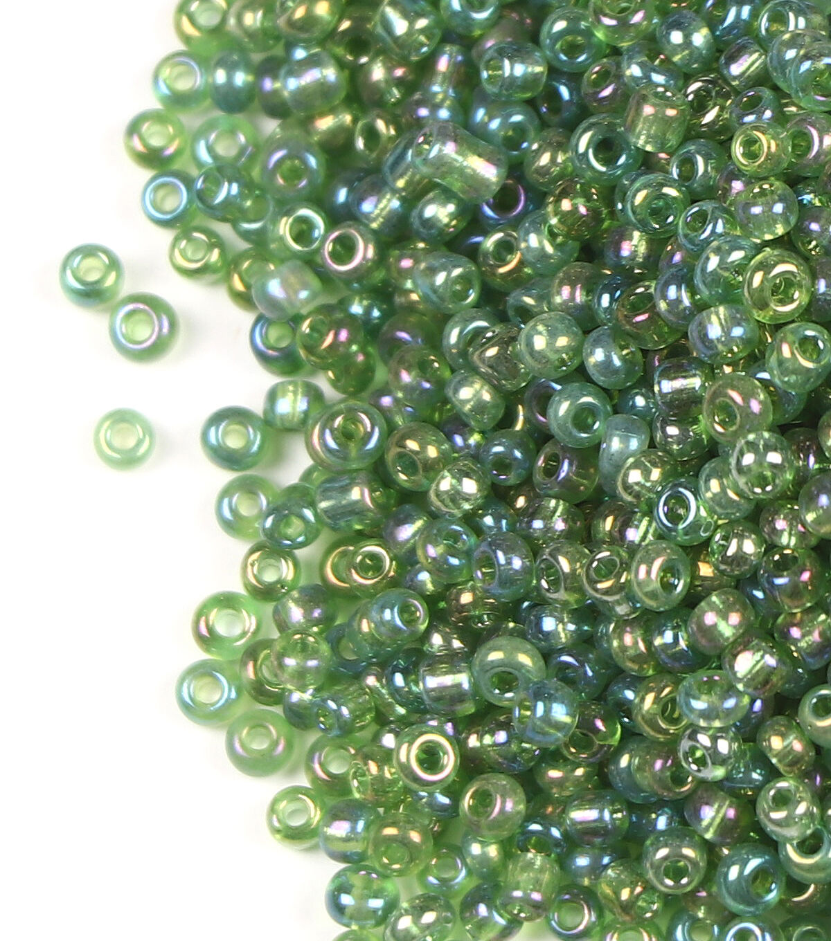 Lend a stylish touch to your jewelry-making projects with the hildie & jo Glass Seed Beads - Green Transparent with Rainbow Effect. These green-hued glass seed beads will be perfect for any of your original designs. You can also pair them with glass beads in vivid hues and delightful charms to design a unique bracelet.