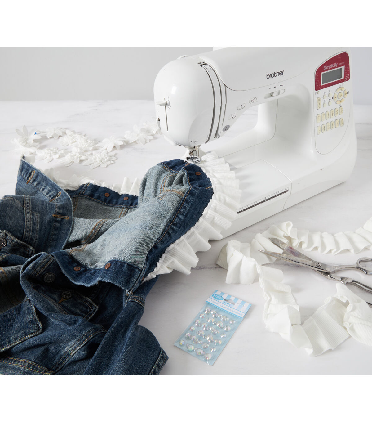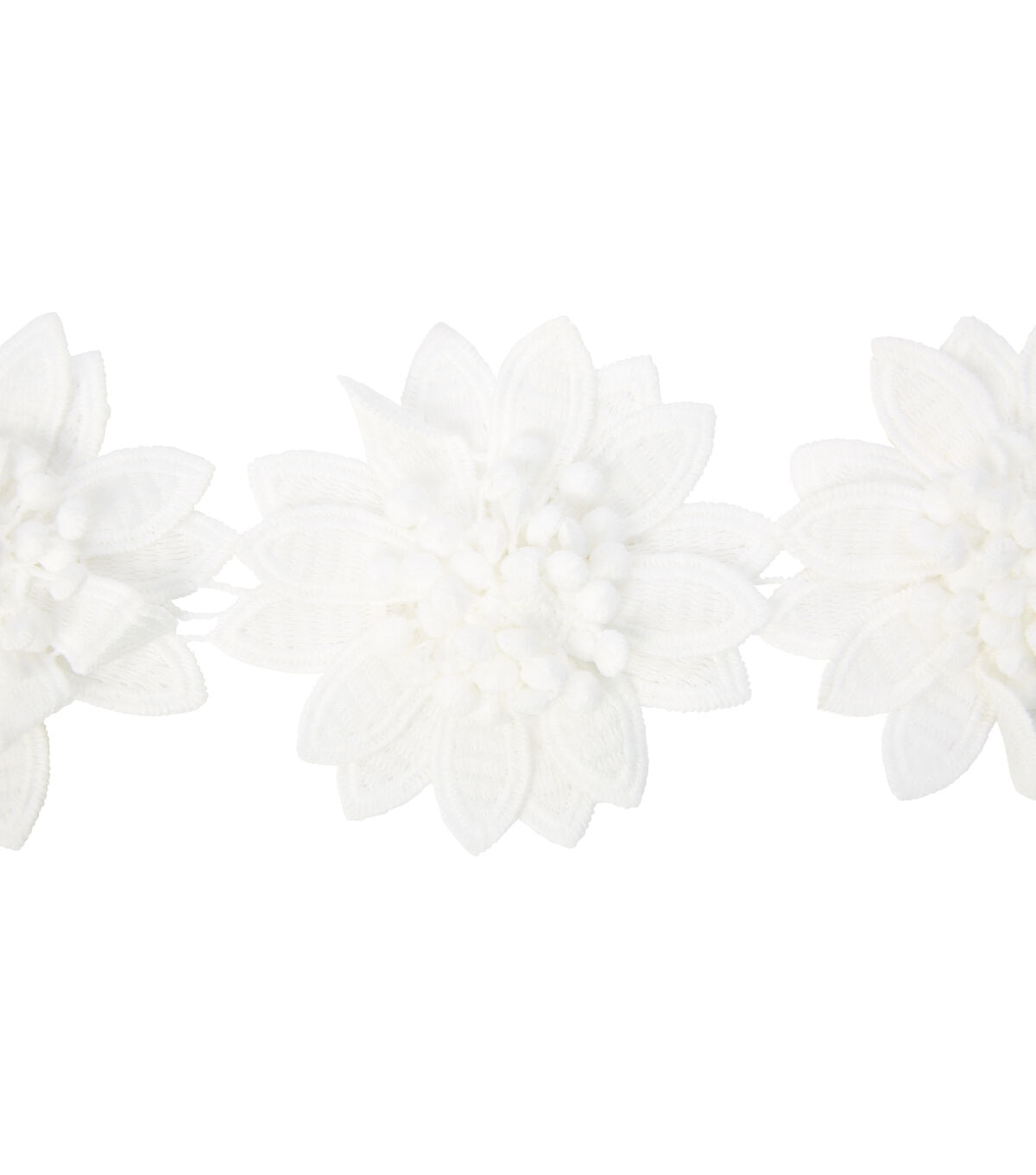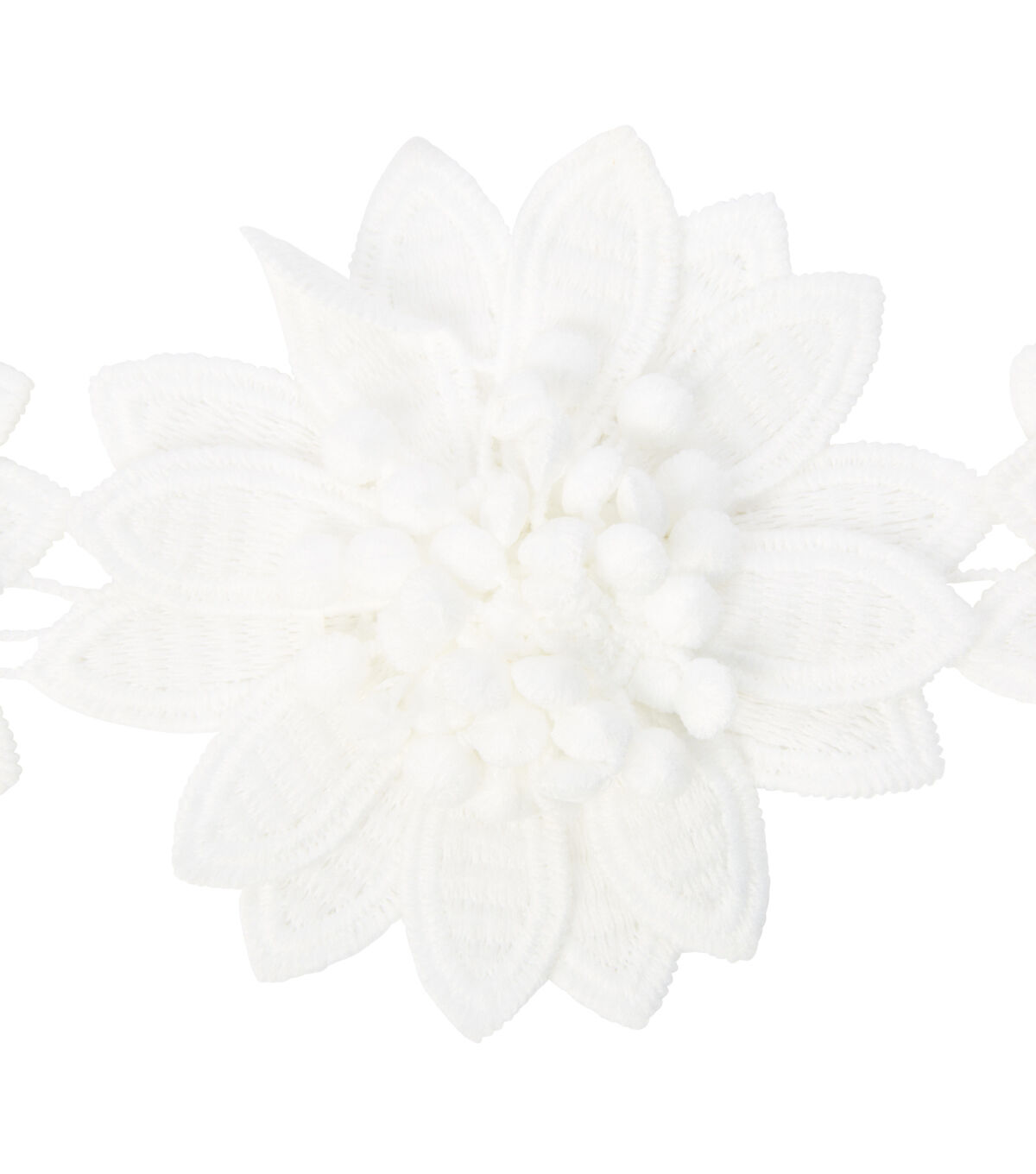 Simplicity 3-1/2 inch Dimensional white Flower trim. Great for embellishing apparel, home décor items along with other sewing projects.