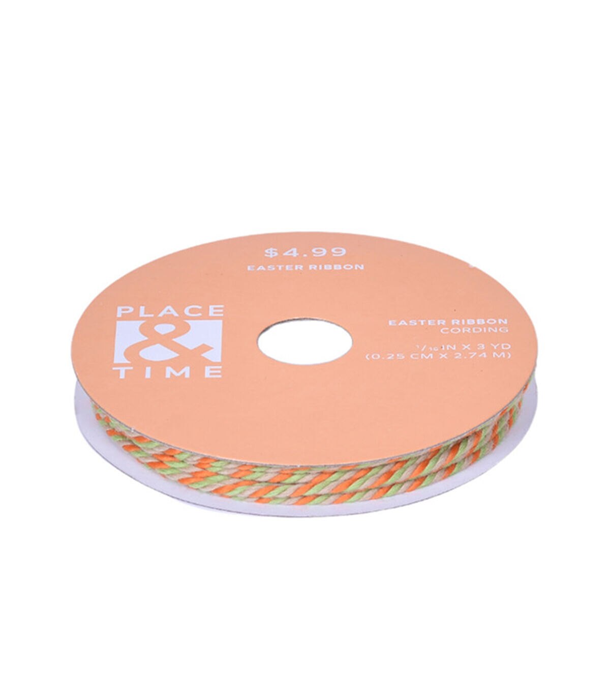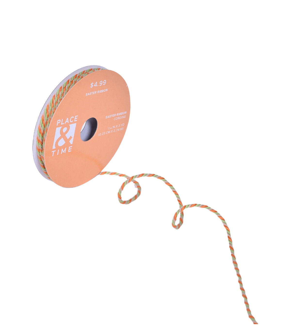 Enhance your handmade apparel or home decor creations this Easter using the Easter Orange Twisted Cord Ribbon by Place & Time. This twist chord sports beautiful hues and will give a finishing touch to Easter baskets, tablecloths and other fabric projects. You can also use it to trim DIY cards and photo frames.