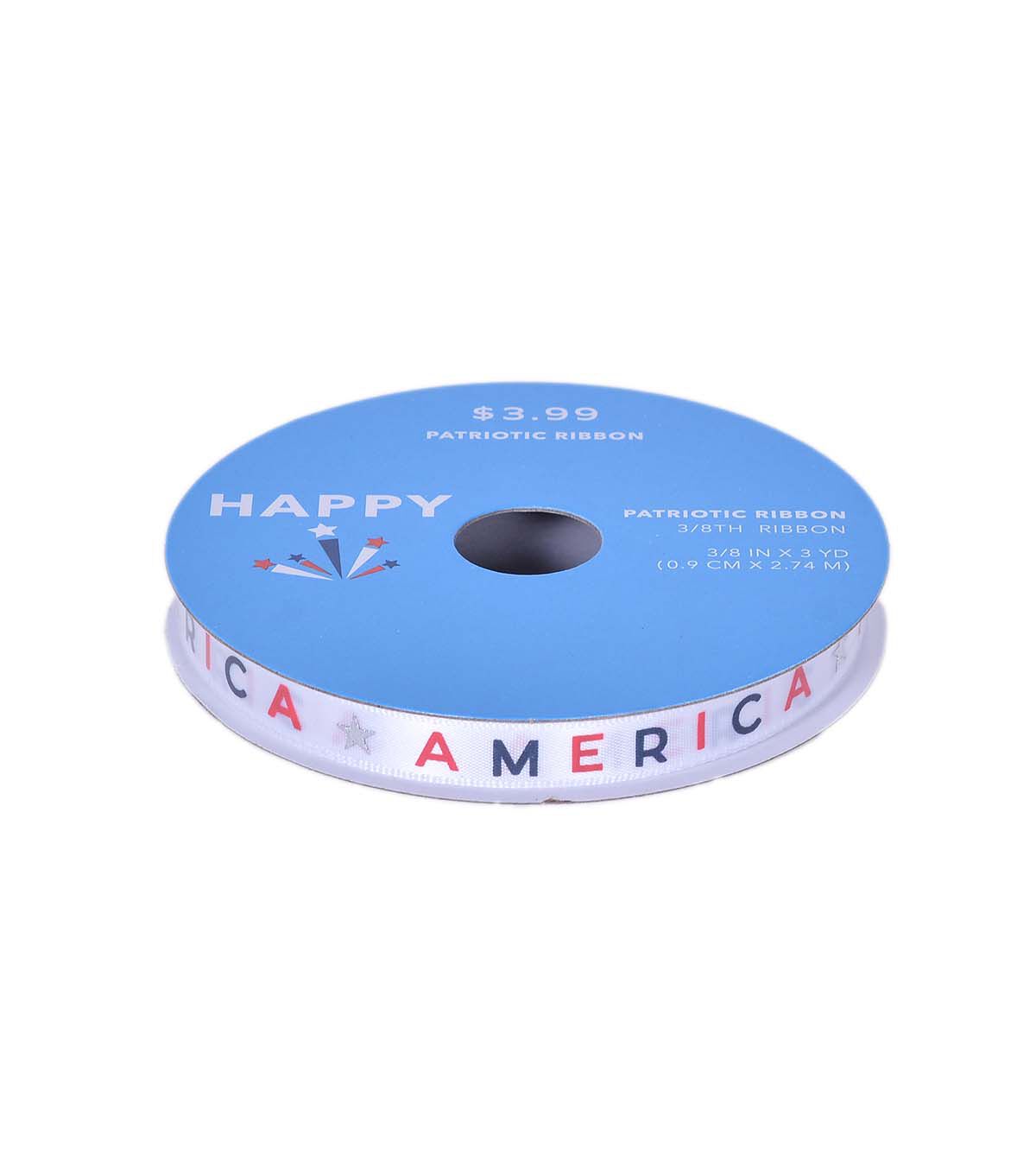 Get Creative with Happy Patriotic 3/8" x 9' America Silver Foil Stamp Satin Ribbon