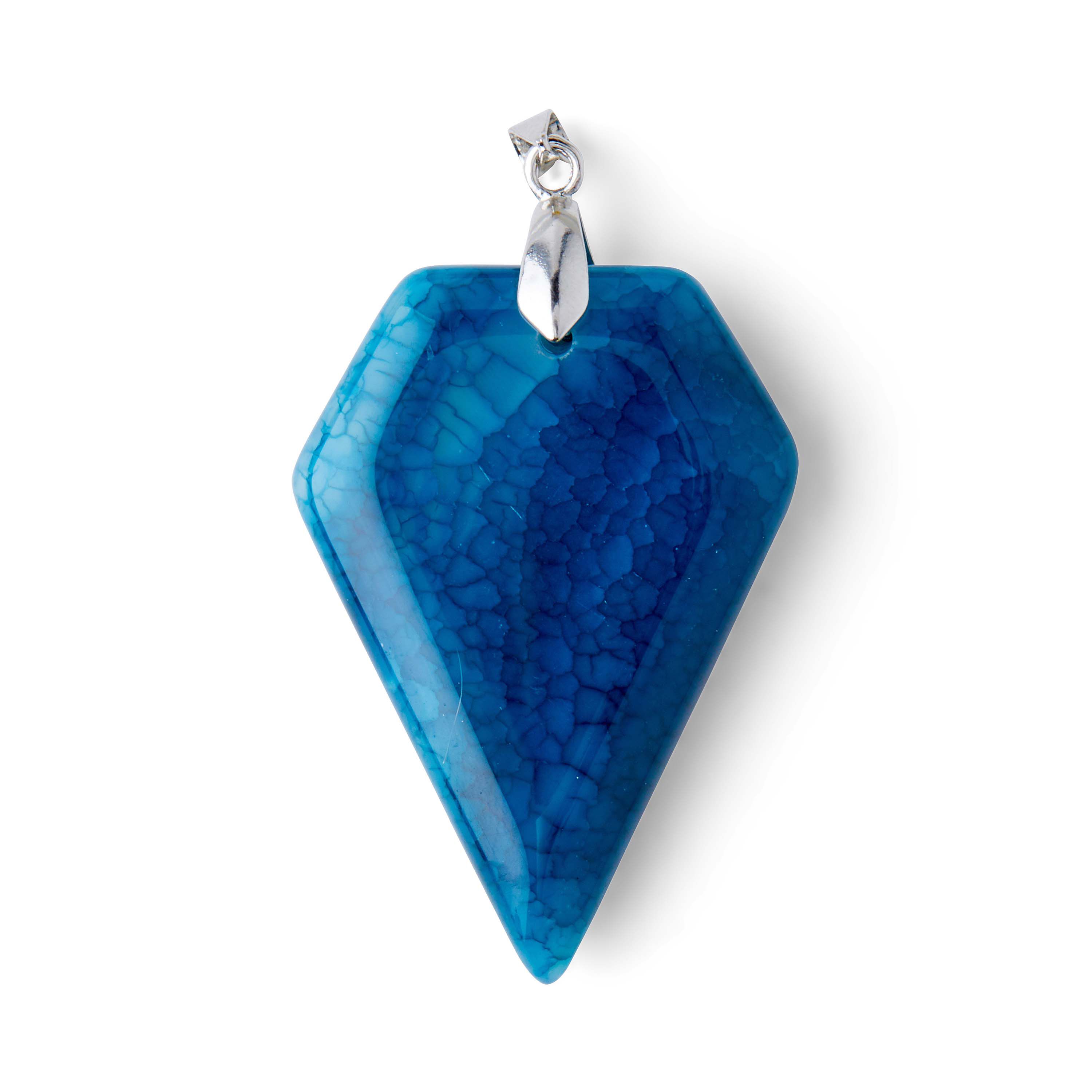 Rich looking, deep blue faceted stone pendant is ready to add color & depth to your fashion look! Set in silver metallic with a blue crystal and filigree style connector, it is sure to liven up the neckline of a favorite blouse or dress. Just add a matching cord or chain for an almost instant design. Mix with other beads & dangles for an even more creative look! Approx. 3" long.