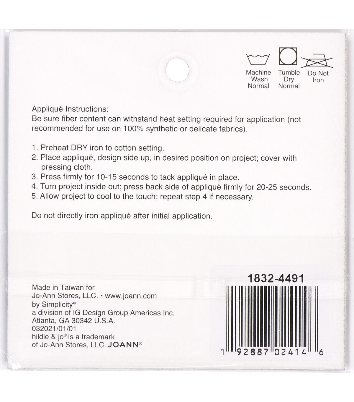 This sweet kitty, decked out in a pretty floral crown, is sure to delight all cat fanciers. Attach it to a jacket, jeans, backpack, or other accessory. Includes one applique, approx. 3.25" wide x 3" high. The applique has a heat-seal backing for ironing, but depending on your project it can be applied with glue or sewn onto item for added durability. Easy ironing instructions included on back of package.