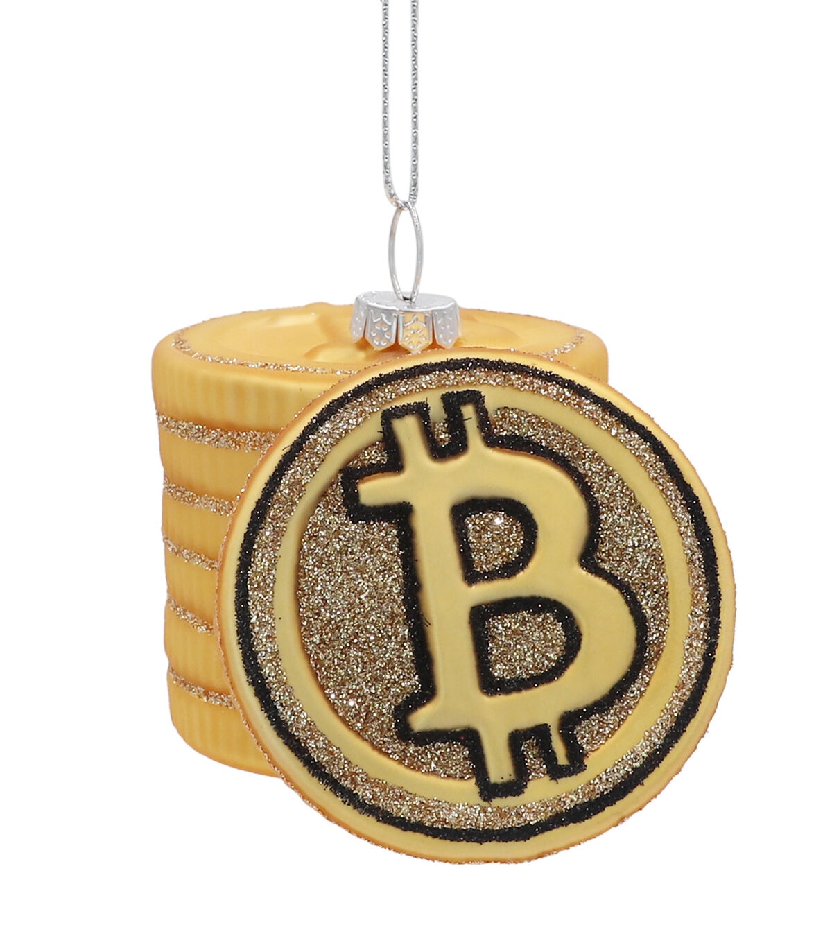 Add the Christmas Crypto Currency Glass Ornament by Place & Time to your Christmas tree and it’s sure to give it an interesting touch. Sporting a gold tone and trimmed with glitter, this Crypto currency ornament looks attractive. Use the hoop on the top to hang it from one of the branches of your family tree.