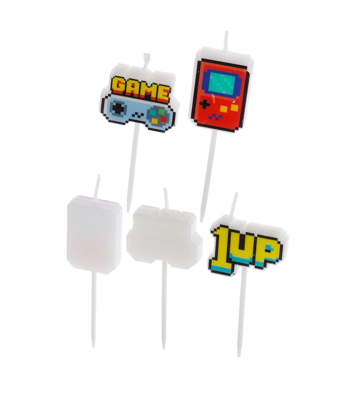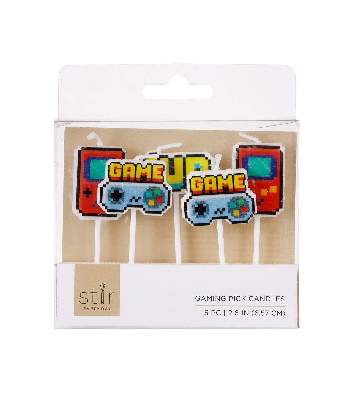 The gamer in your life will be delighted when they see the STIR Everyday Gaming Pick Candles on their birthday cake. This pack contains five candles designed with accents themed around gaming. These candles sport lovely shades and will be perfect for any special occasion. You can also use them to decorate cupcakes and other treats.