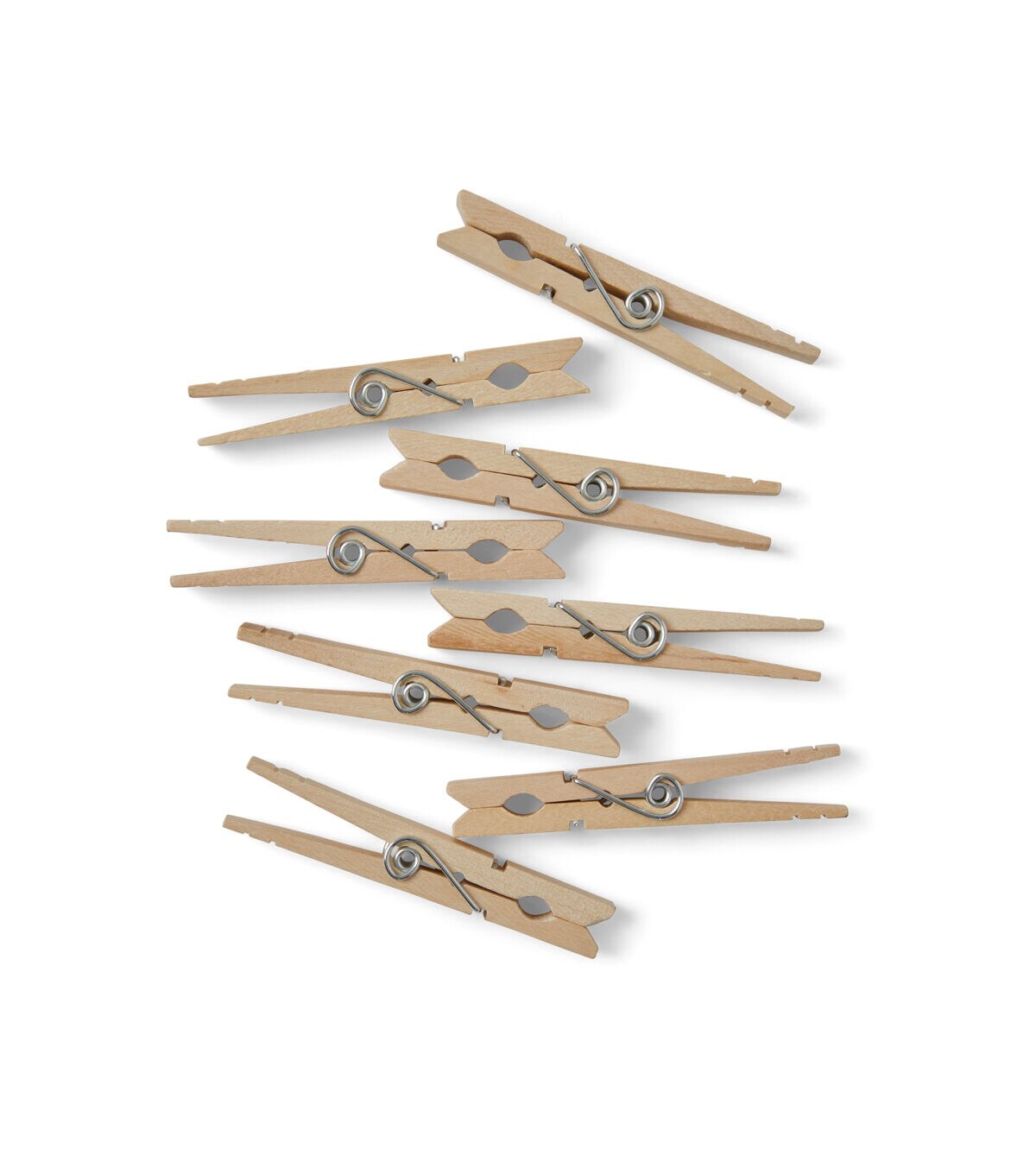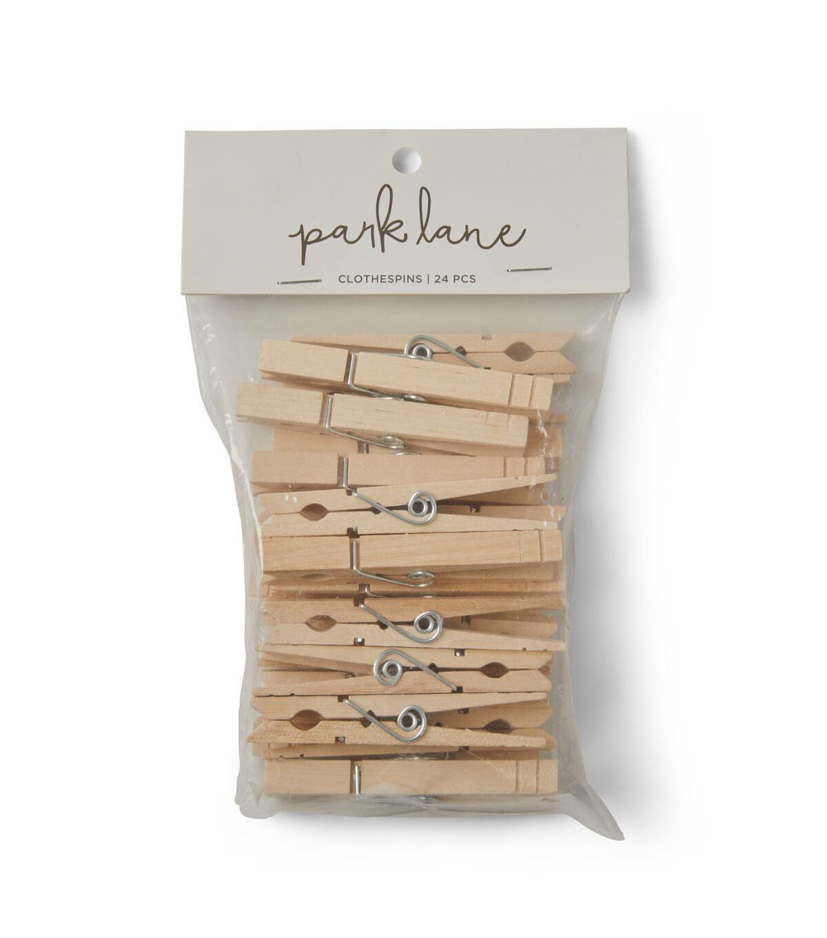 The Park Lane Wooden Clothespins - Ivory will make a great addition to your decor supplies. This pack contains 24 high-quality clothespins. Hang your kids' masterpieces or create tiny clothespin dolls using them. You can also embellish them with beads or buttons for added appeal.