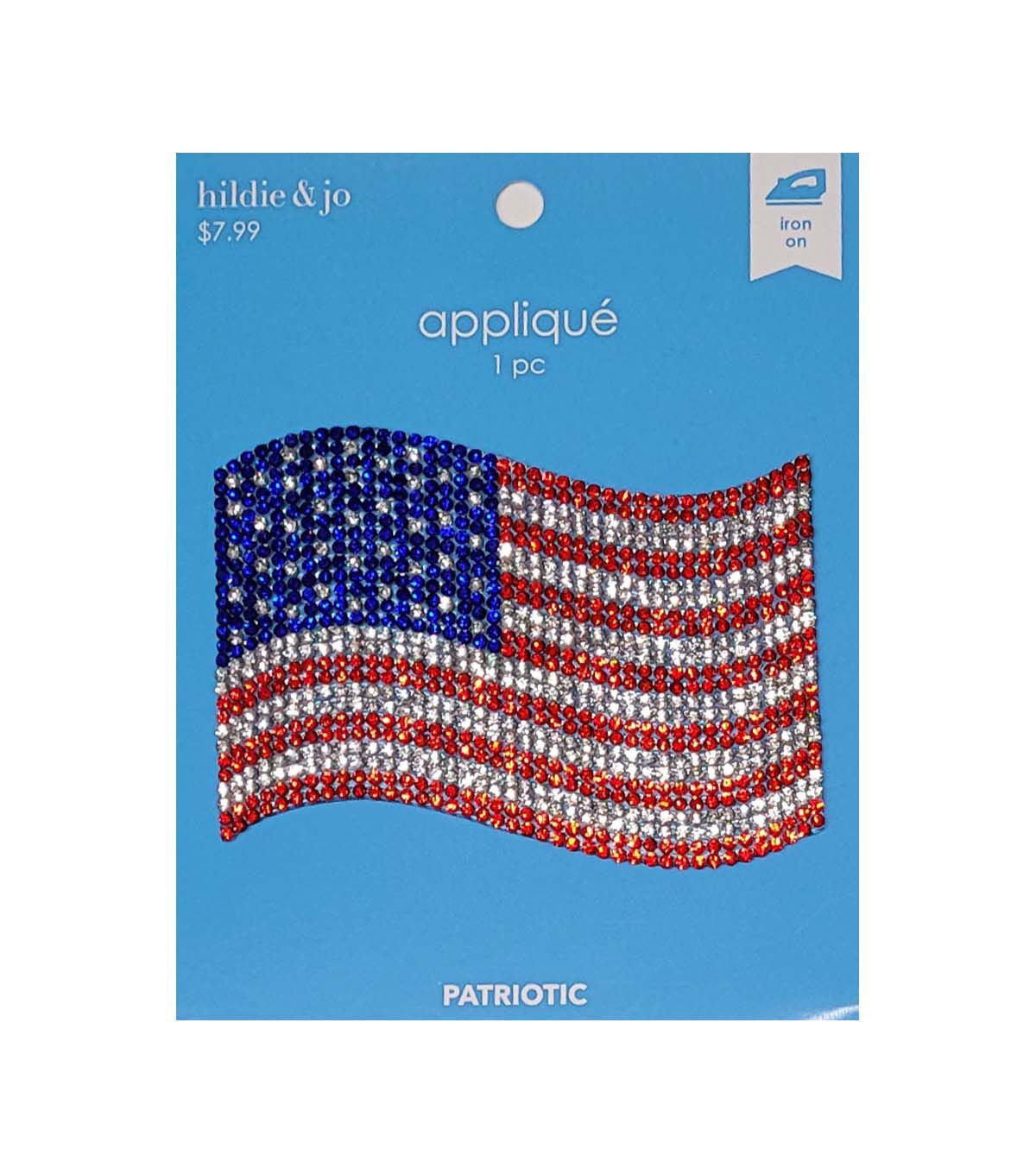 Add a Patriotic Touch to Your Outfit with 3" Patriotic Flag Rhinestone Iron On Applique by Hildie & Jo