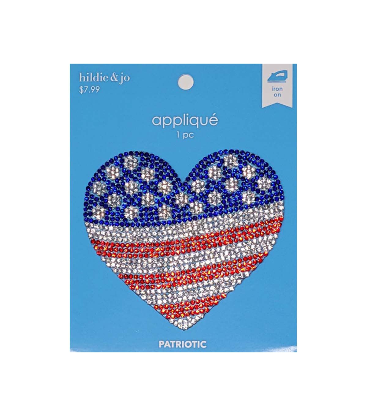 Add a Sparkling Touch to Your Patriotic Projects with the 3" Patriotic Heart Rhinestone Iron On Applique by Hildie & Jo