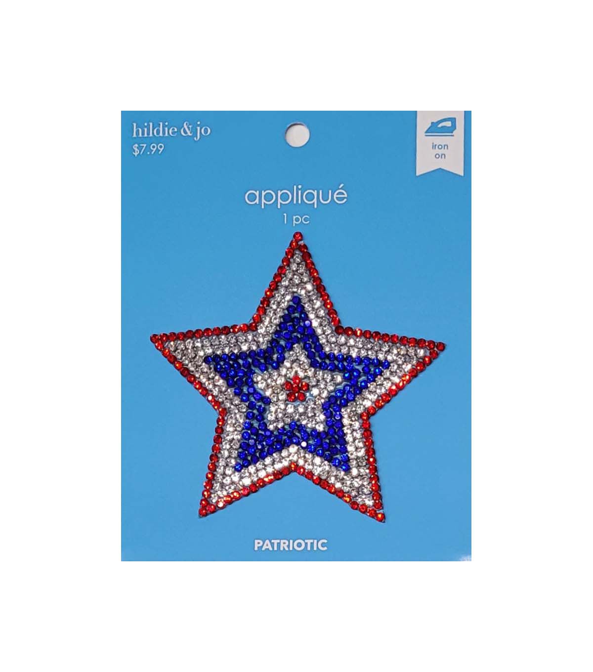 Add a Sparkling Touch to Your Patriotic Attire with 3" Patriotic Star Rhinestone Iron On Applique by Hildie & Jo