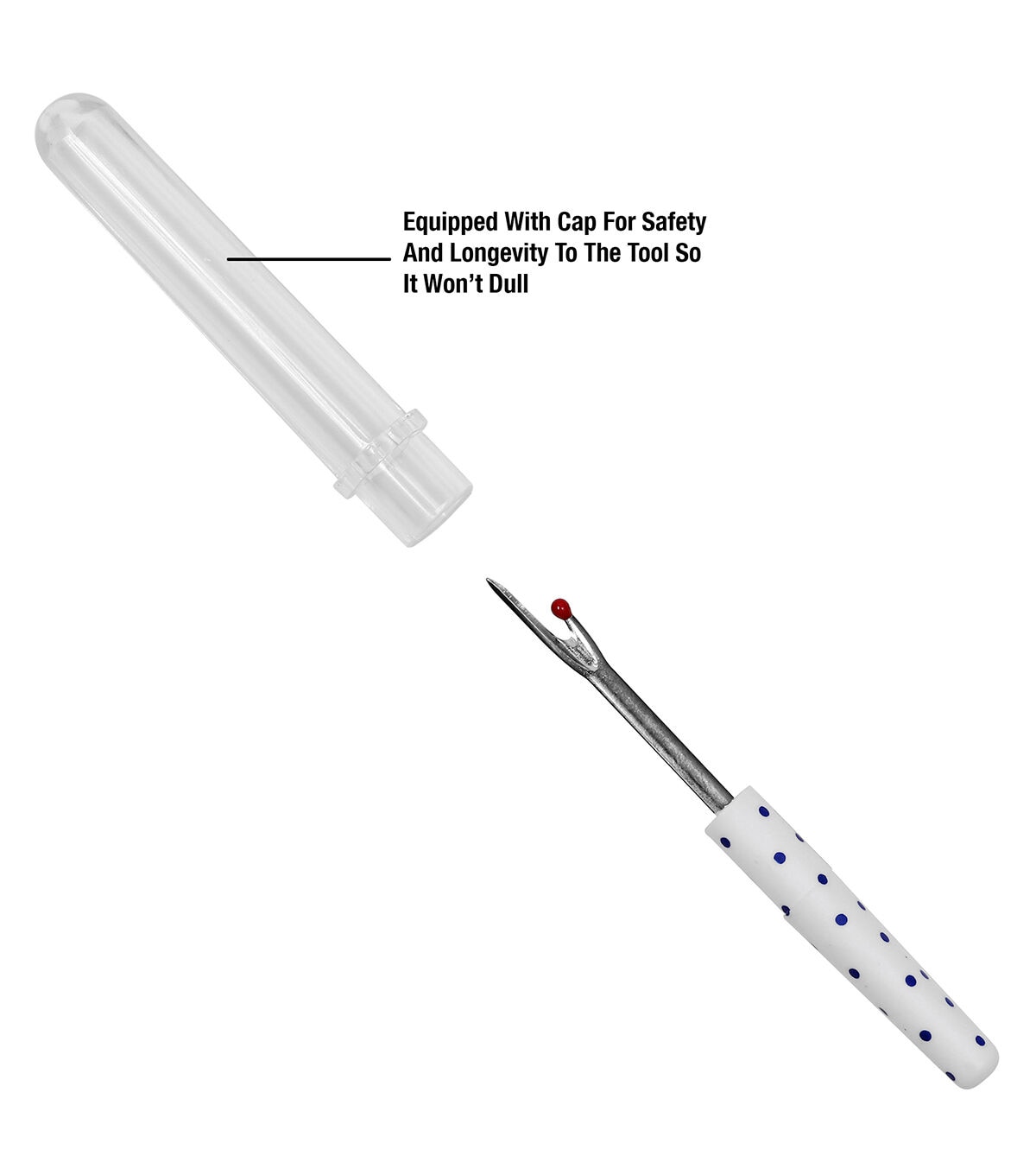 - The clear safety cap keeps the point covered when not in use and extends the life of the sewing tool