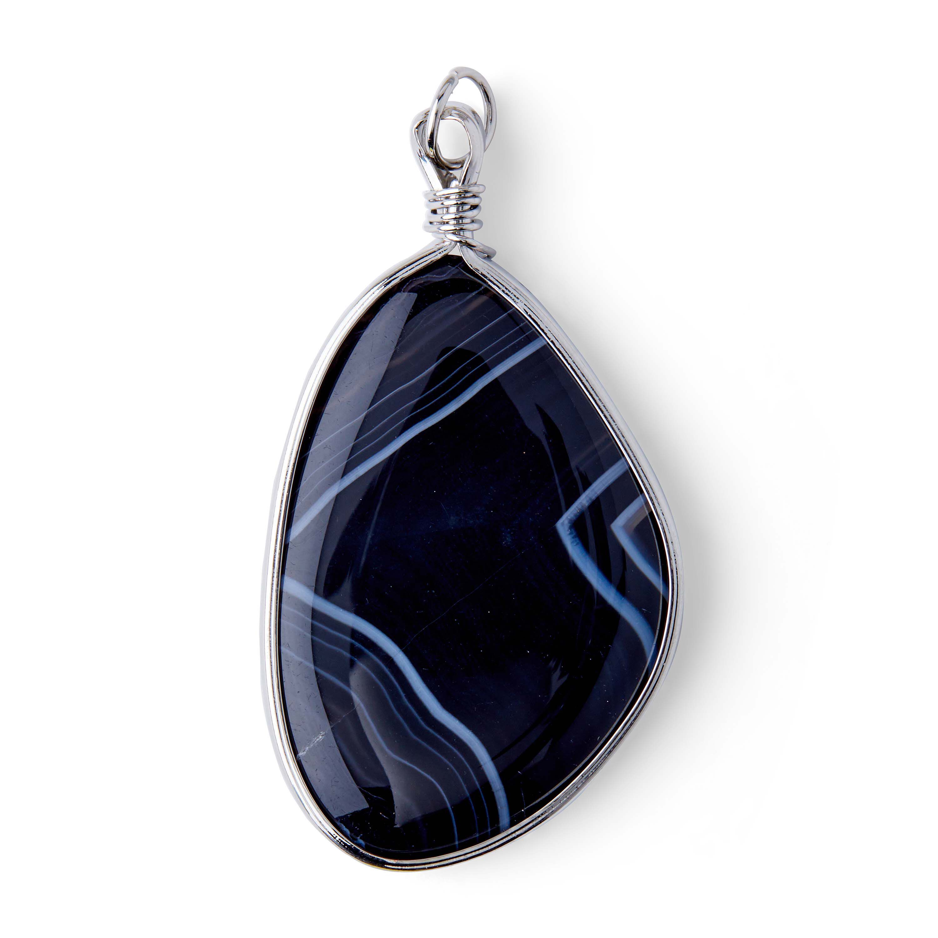 Eye-catching necklace pendant gives off a natural sophistication with a simple layered look. Add a cord or chain for an instant casual, nature-inspired necklace. Edged with silver metallic and wrapped with wire at the top. Includes jump ring. Approx. 3 inches long.