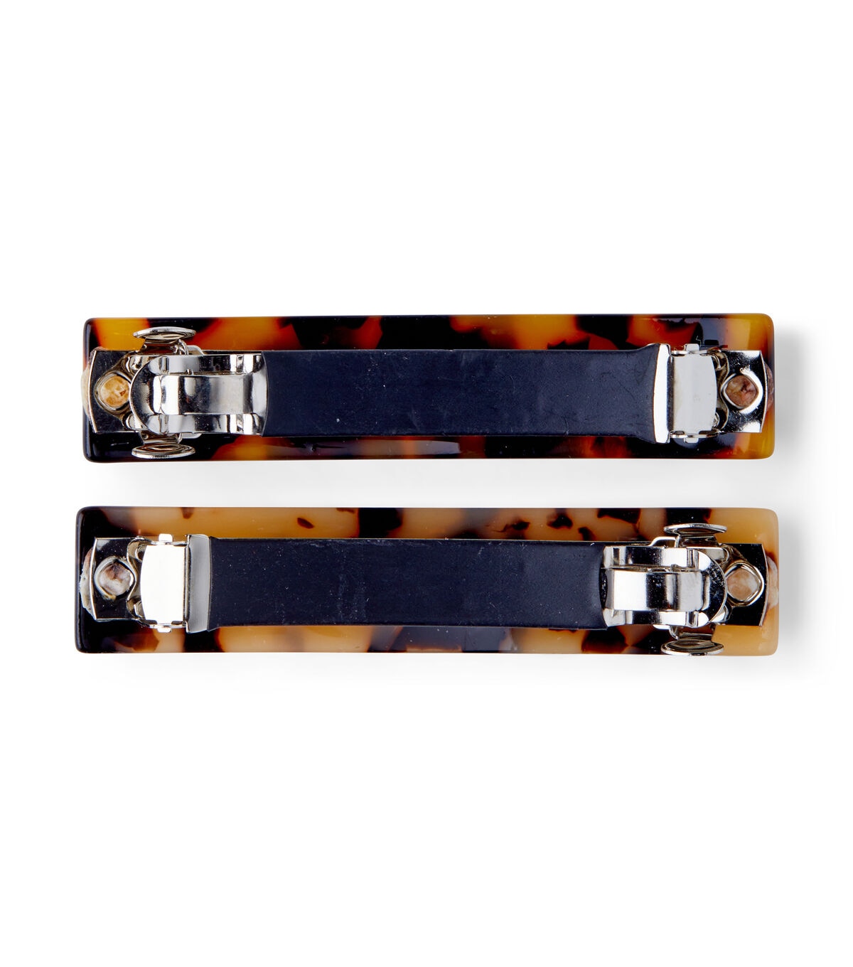 Keep your hair neatly tied with the hildie & jo Resin Hair Clips - Tortoise Shell Pattern. This pack includes two clips made from metal and resin. They sport a tortoiseshell finish in contrasting shades. You can also use them to hold your hair bun firmly in place. These hair accessories will perfectly complement your animal print dresses and tees.