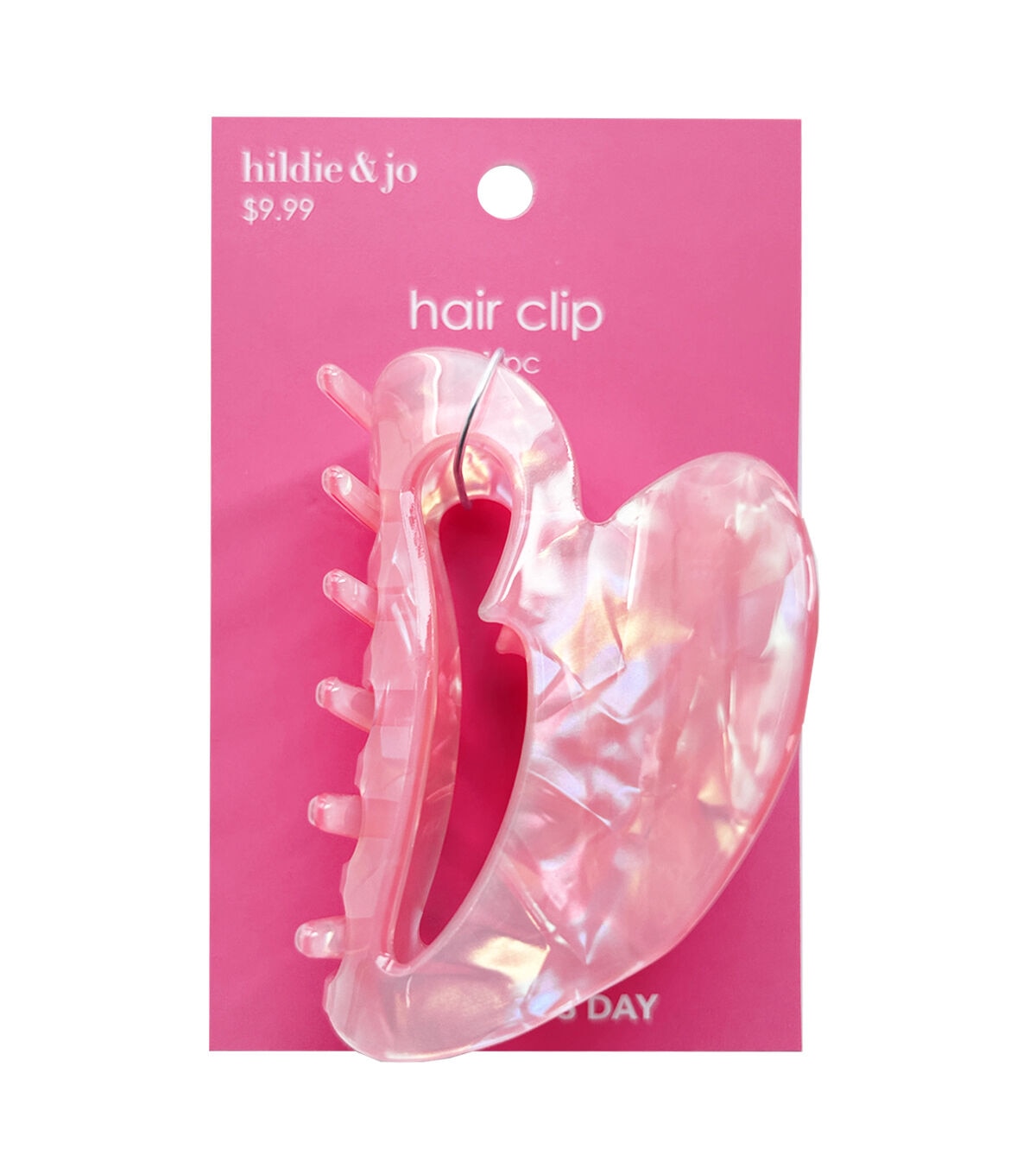 Keep your hair in place using the Valentine's Day Pink Hair Claw Clip by hildie & jo. This hair claw clip sports a pink shade and an iridescent finish. It will perfectly complement your Valentine’s Day outfit and can be worn to date nights, picnics or movies. Team it with coordinating hair clips, sold separately, to complete the look.