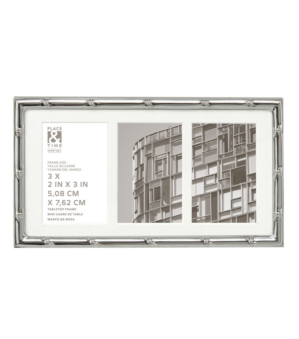 The Silver Bamboo 3 Photo Tabletop Collage Frame by Place & Time will add a chic look to your home decor. This collage frame in a silver tone flaunts a bamboo pattern and looks stunning. You can use it to display three pictures or paitnings. It will also make a great gift for a loved one on a special occasion.