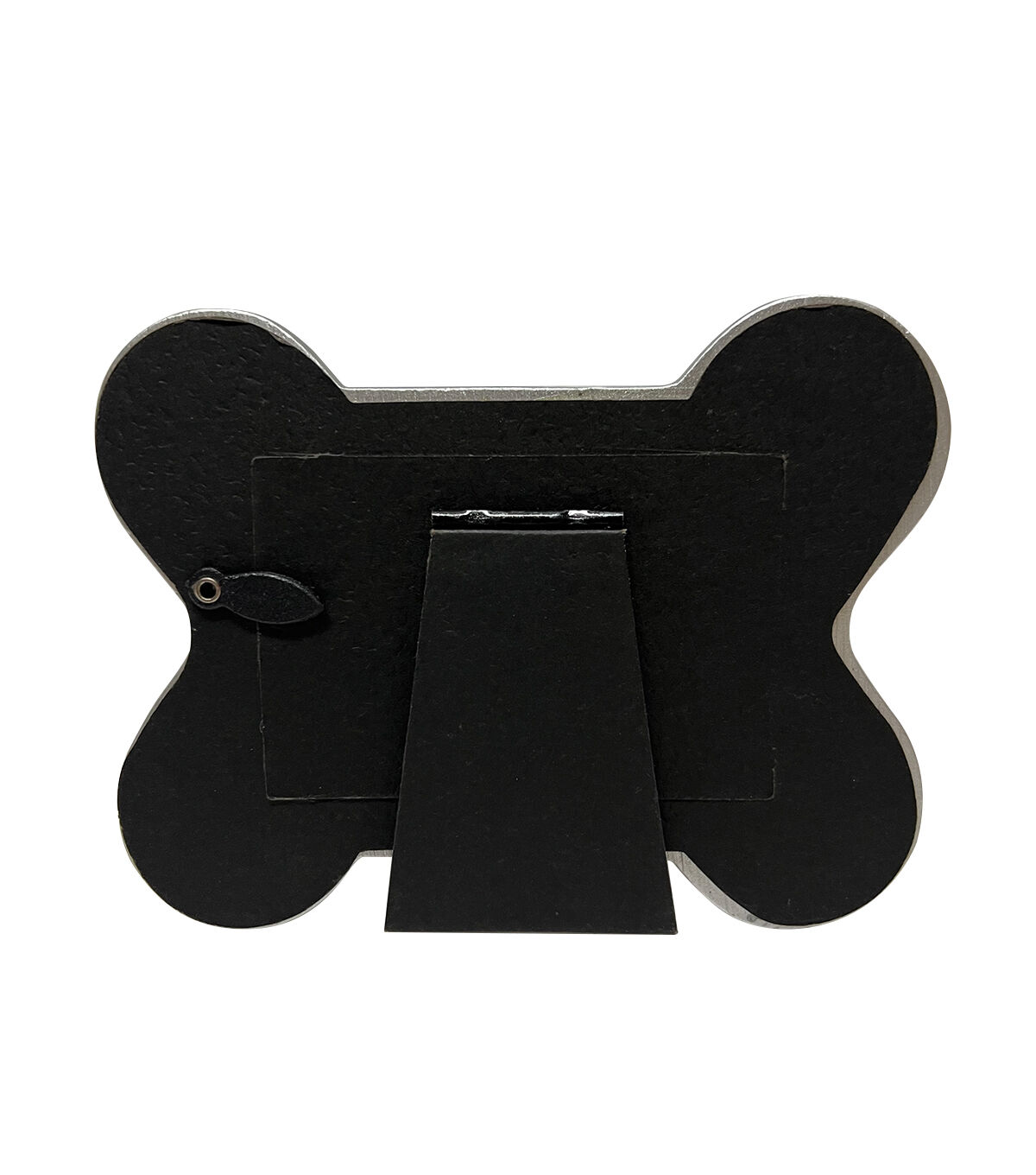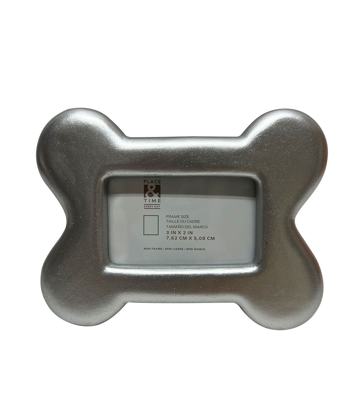 Showcase your love for your furry friend with the Silver Dog Bone Tabletop Frame by Place & Time. This unique silver-toned photo frame is shaped like a chew bone, making it a fun and interesting addition to any room. The frame is designed with a stand at the back for ease of display, so you can easily add a picture of your pet and display it on your bedside table or desk.