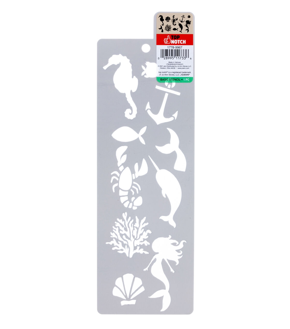 Explore the ocean with the Top Notch Nautical Stencil Sheet. This unique stencil sheet features an array of sea creatures to complete your under the sea project. Durable and reusable, this plastic stencil sheet is easy to clean up with mild soap and warm water. Dive into a sea of fishy stencils with the Top Notch Nautical Stencil Sheet. Explore the ocean with the Top Notch Nautical Stencil Sheet. This unique stencil sheet features an array of sea creatures to complete your under the sea project. Durable and reusable, this plastic stencil sheet is easy to clean up with mild soap and warm water. Dive into a sea of fishy stencils with the Top Notch Nautical Stencil Sheet.
