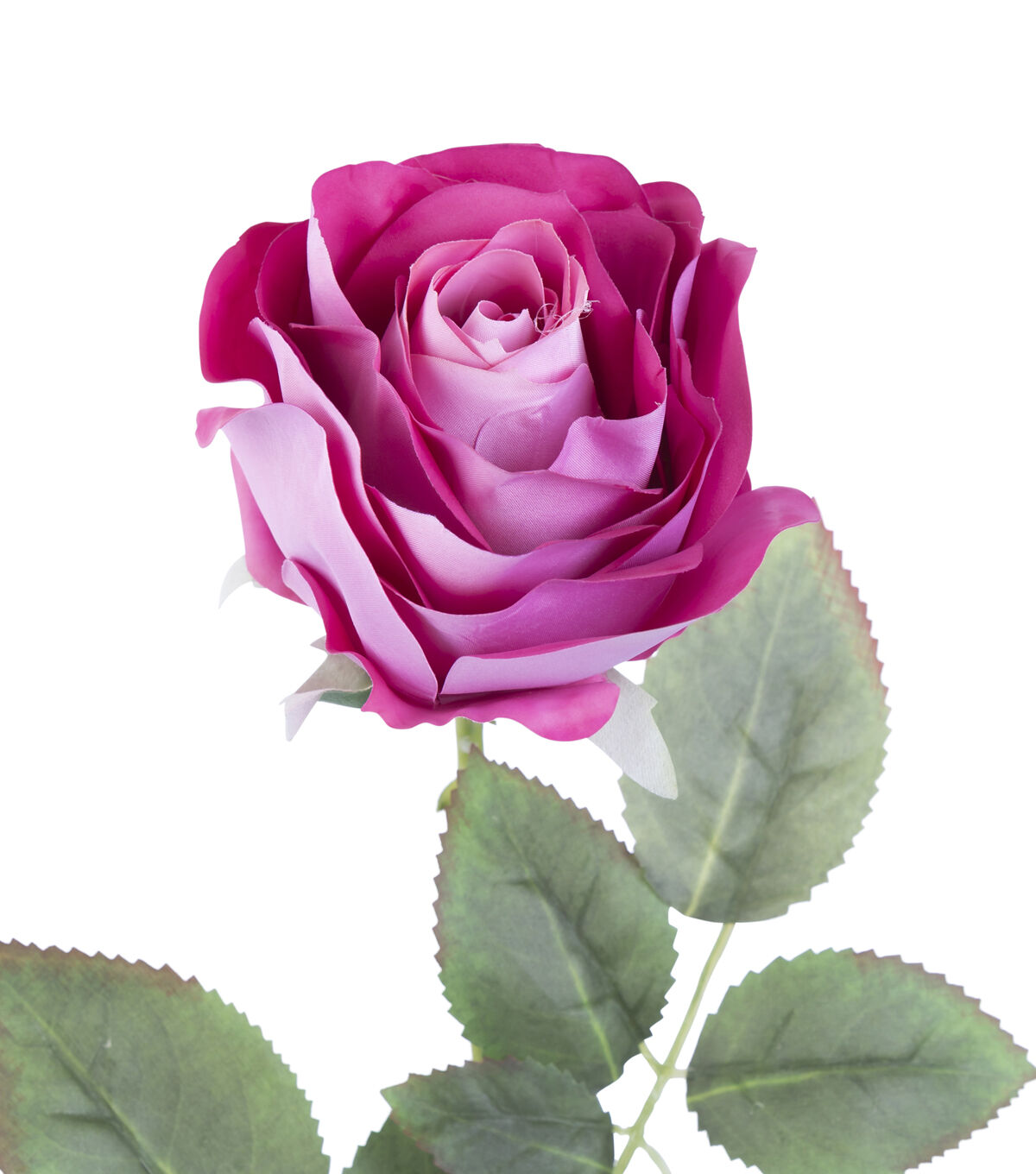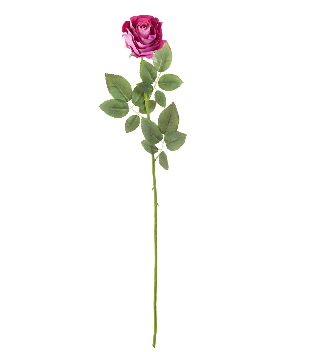 Fresh and lifelike, the Bloom Room Real Touch Rose Stem - Fuchsia will look perfect in any space. This faux floral stem displays a lifelike rose in a lovely shade of fuschia and leaves. Pair it with a glass vase and display it anywhere in the living room or dining room for visual charm.