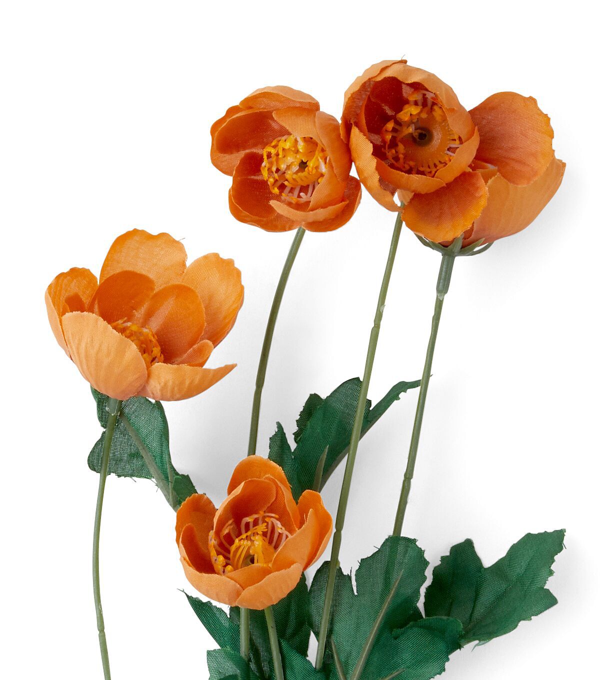 Create a beautiful floral arrangement for your living room using the Spring Orange Buttercup Stem by Bloom Room. This faux stem is designed with natural-looking buttercup blossoms in an orange shade and green leaves. You can also showcase it as is in a ceramic vase to add seasonal charm to your interiors.