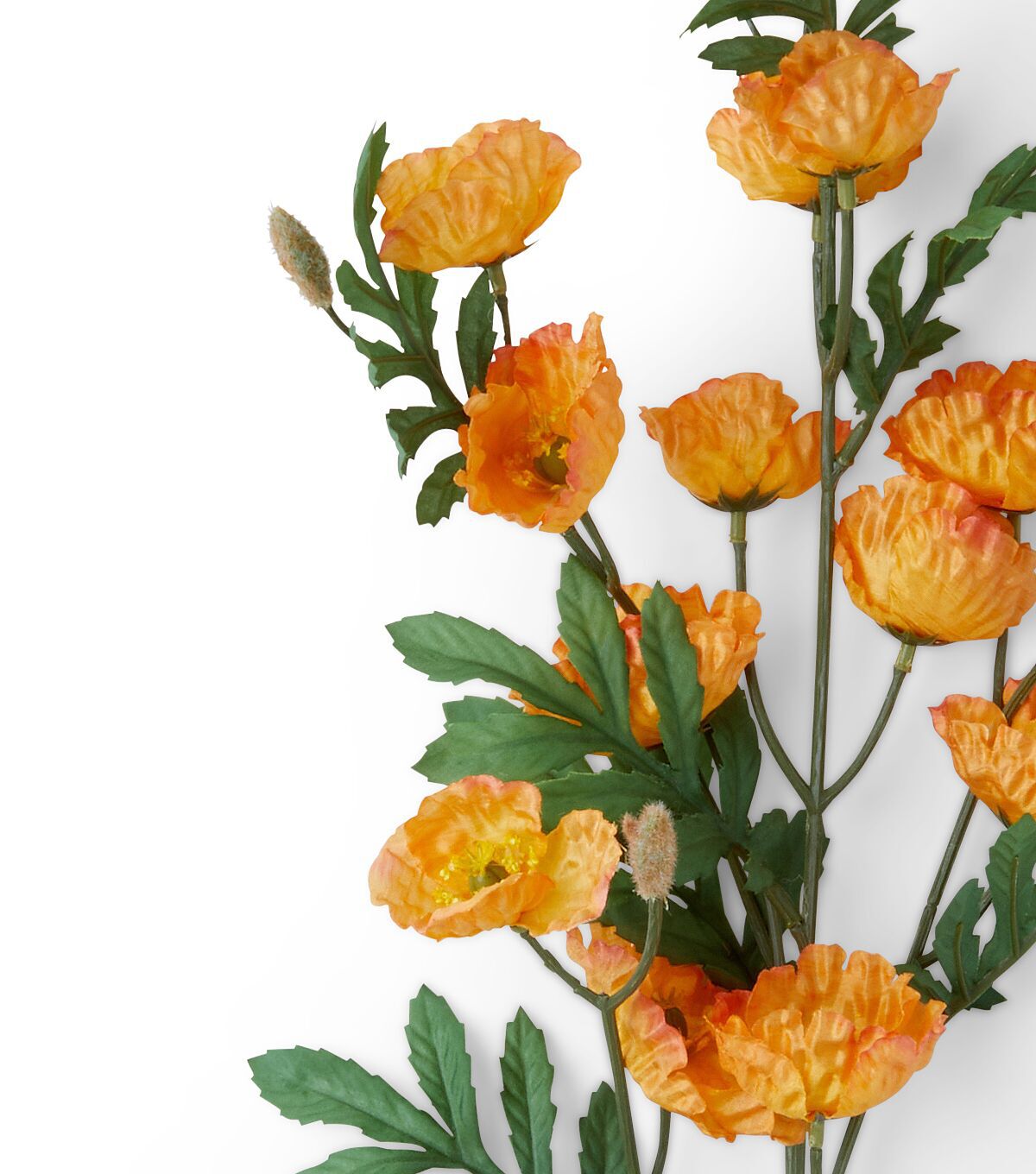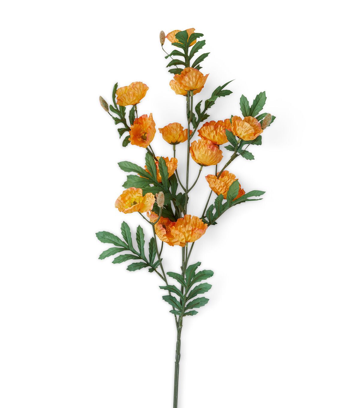 The Spring Orange Mini Poppy Stem by Bloom Room is sure to add a refreshing touch to your spring decor. This faux stem is designed with mini poppy blossoms sporting an orange shade and leaves in green. You can team it with other floral stems to create a colorful bouquet for your favorite vase and display that in the living room or entryway.
