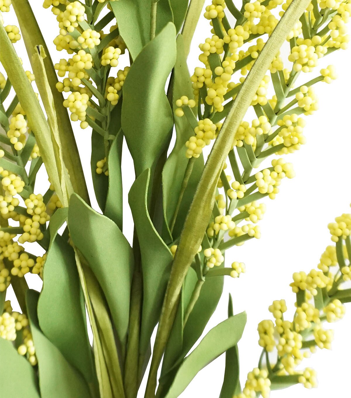 Add springtime charm to your interiors with the Spring Yellow Berries & Leaves Stem by Bloom Room. The yellow berries and green leaves on this faux stem are sure to bring out the essence of the season. Place it in a metal vase and use it to decorate your entryway. You can also team it with realistic flower stems to create a unique floral display.