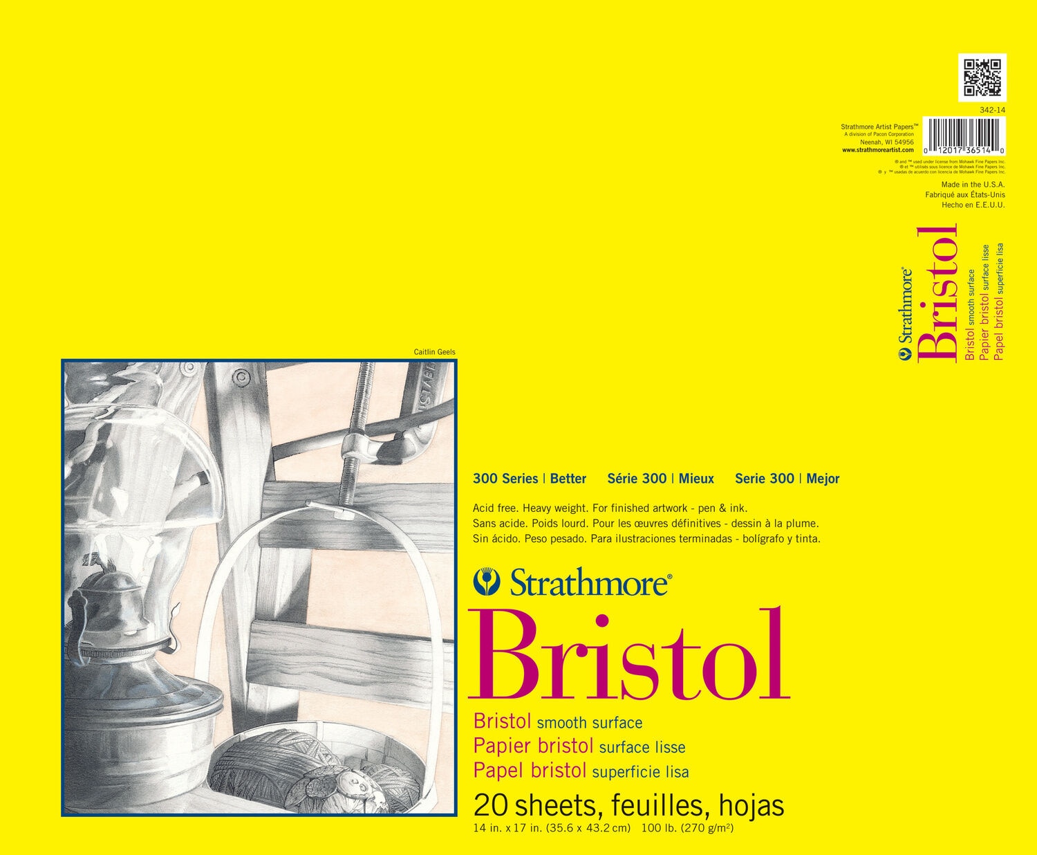 Strathmore-Smooth Bristol Pad. Perfect for finished artwork (pen & ink)! This package contains one 14x17 inch pad with twenty smooth surface sheets. Acid free. Made in USA.