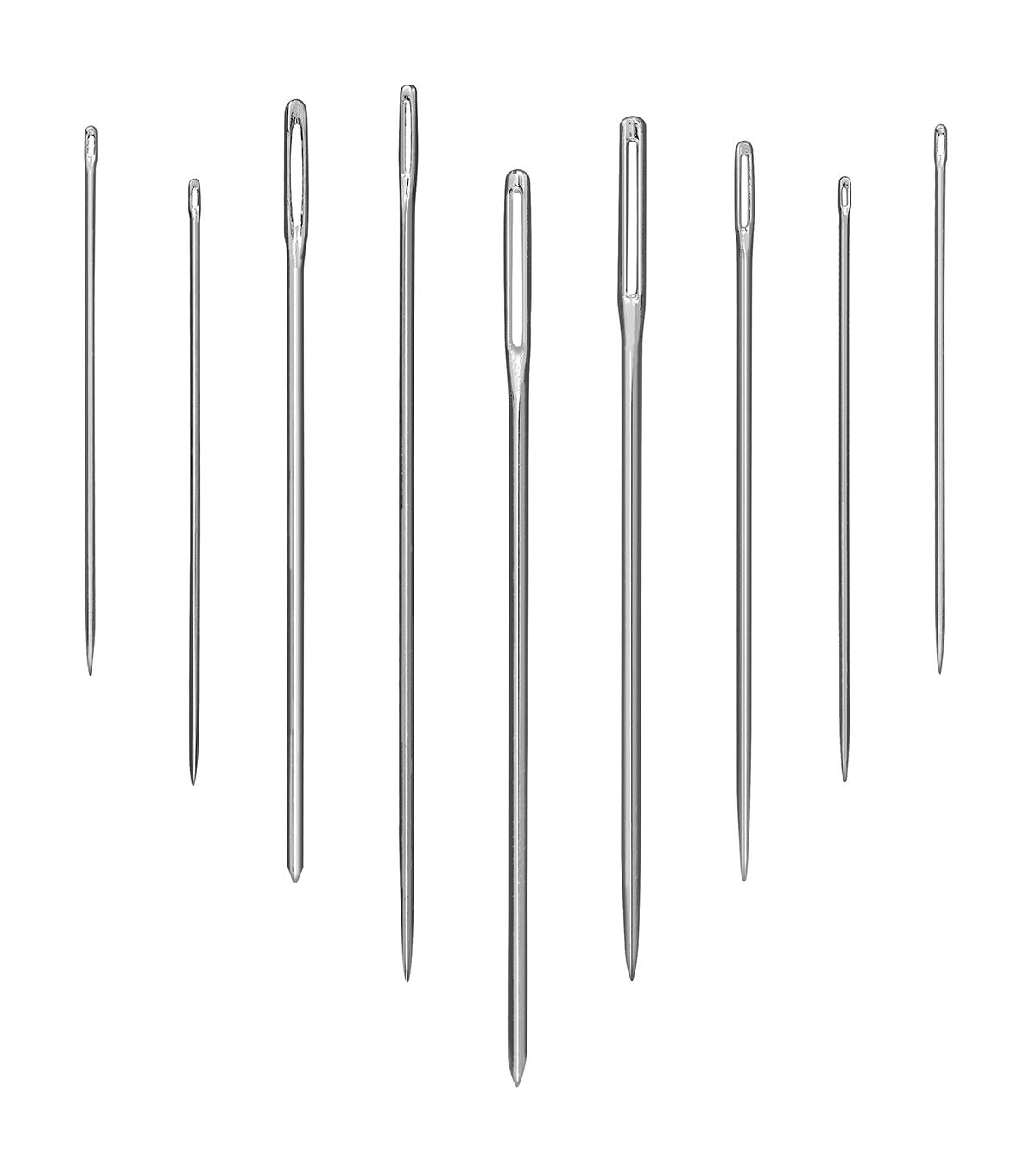 - Set of 30 assorted hand sewing needles includes between needles, darners, embroidery needles, and sharps, each made from strong nickel-plated steel