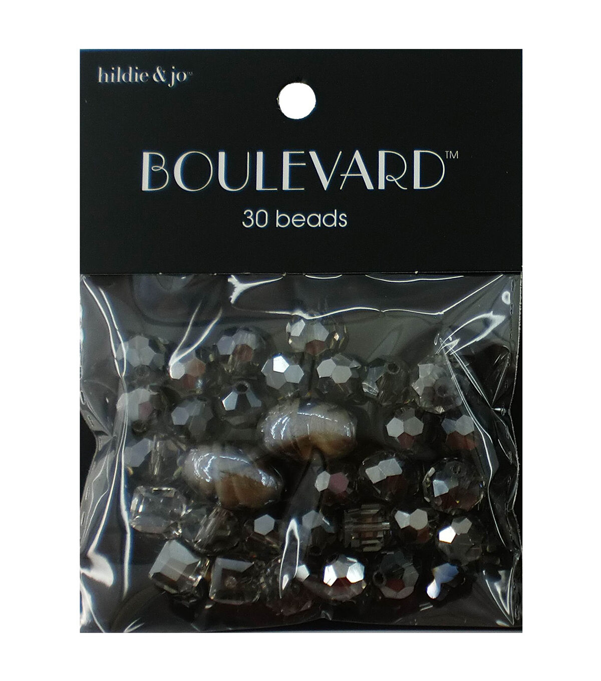 Design stunning handmade necklaces, bracelets and earrings with the hildie & jo Boulevard Mixed Glass Beads - Iridescent Black & Clear. This pack contains 30 glass beads in assorted sizes. Most of the beads have facets and the others are smooth. They are in assorted shapes from round to square. You can also string these dazzling glass beads together to accentuate clothing and accessories.