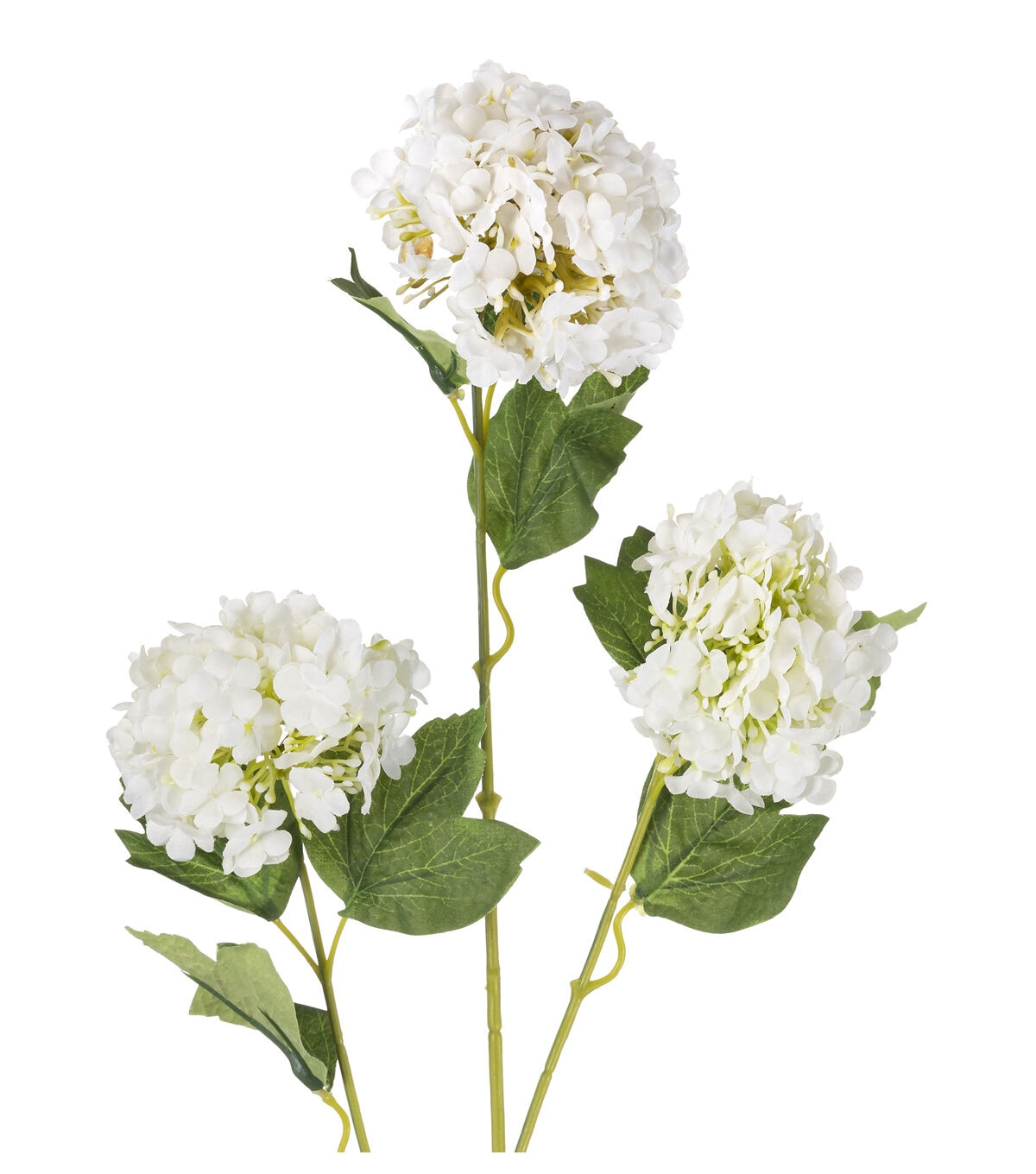 Bring a positive touch to any setting with the beautiful Bloom Room Triple Head Hydrangea Spray - White. It showcases attractive white hydrangeas that are designed to look true to life. The green leaves lend this spray a natural look. Place it as is in a vase to decorate your entryway table or mantelshelf.