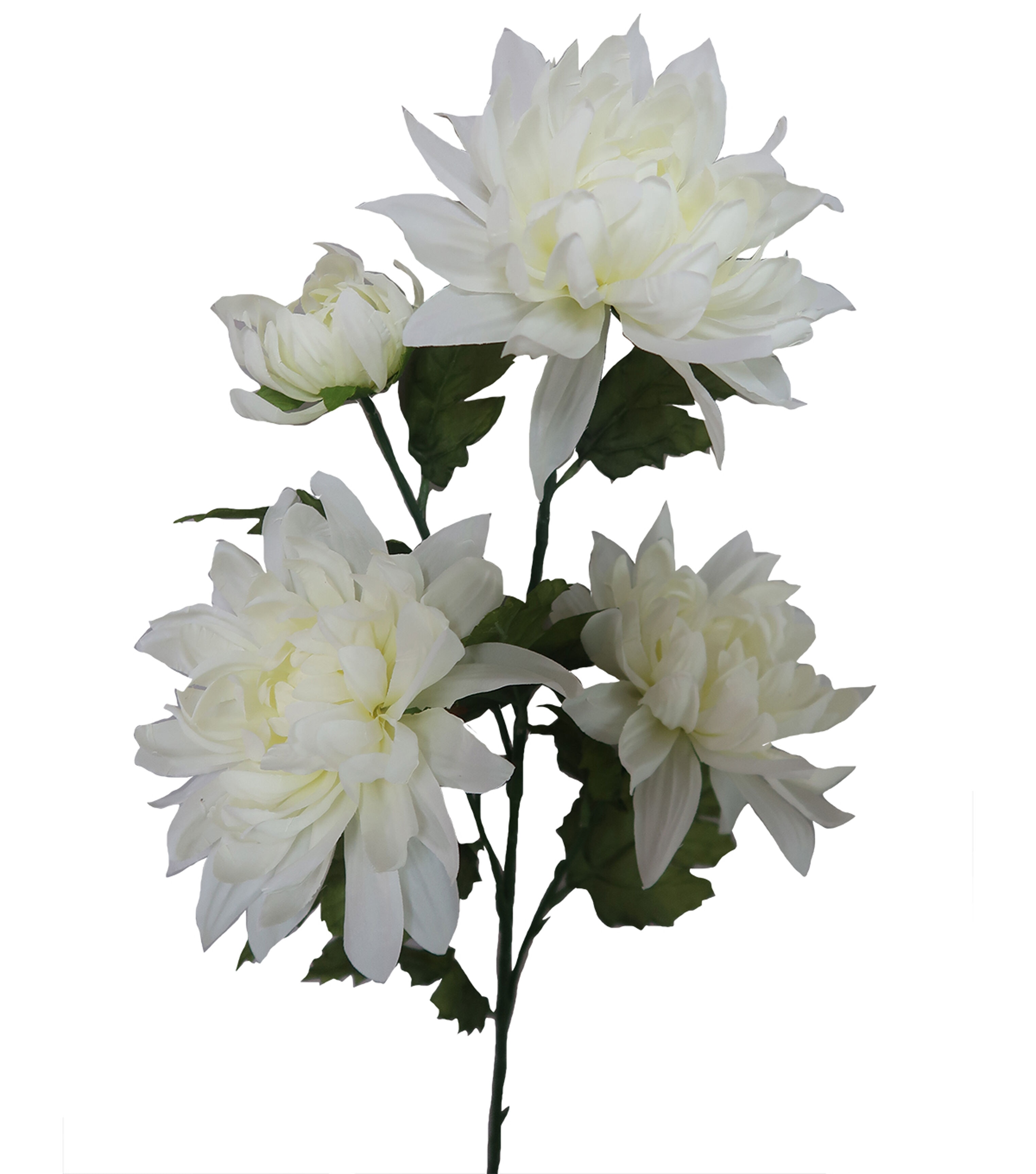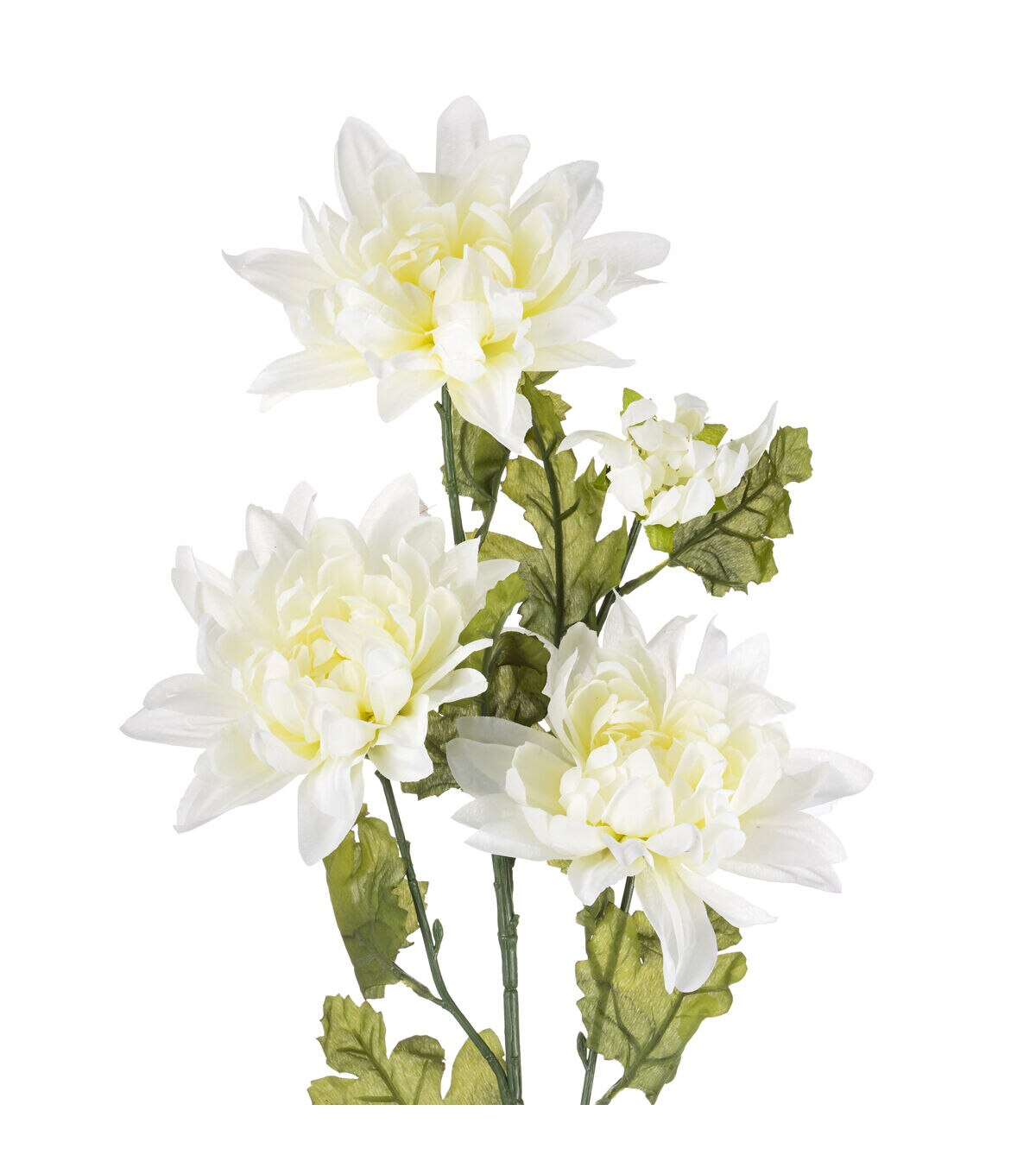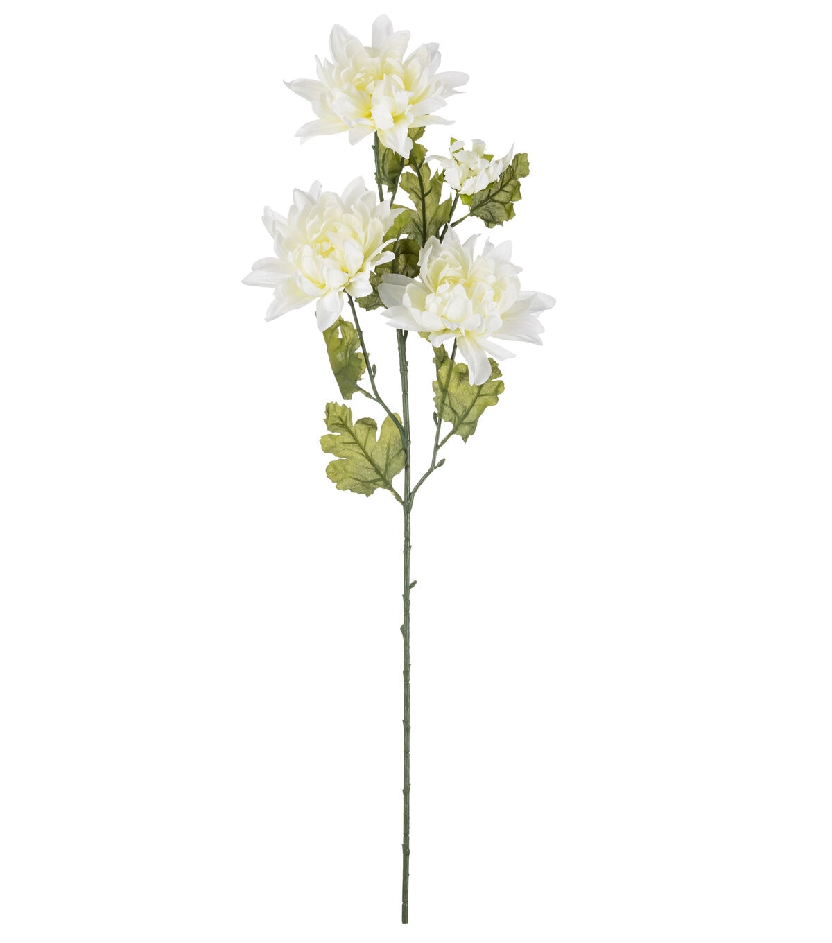 Spruce up your home decor using the Bloom Room 4 Head Mum Stem - Cream. This faux stem flaunts full-bloomed mums in a cream shade and green leaves that give it a realistic look. Place it as is in a flower vase and display it on your coffee table or pair it with colorful floral sprays to create a seasonal bouquet for a loved one.