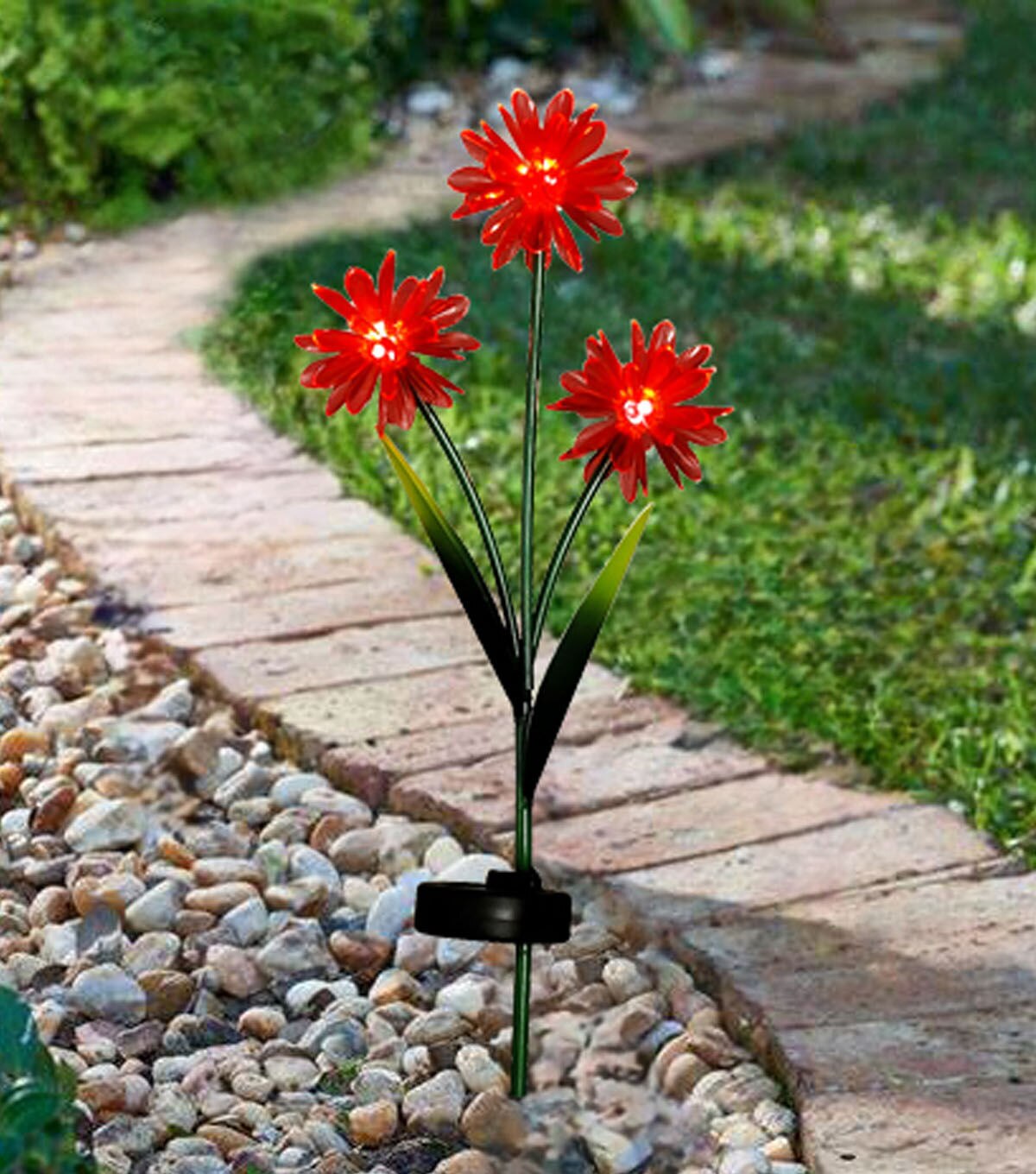Accentuate your spring decor with the Spring Pink Triple Flower Solar Yard Stake by Place & Time. Designed with pink flower-shaped accents that light up, this solar-powered yard stake is perfect to brighten up your garden or front yard. You can also team it with other coordinating yard stakes and place them along the pathway for an interesting look.