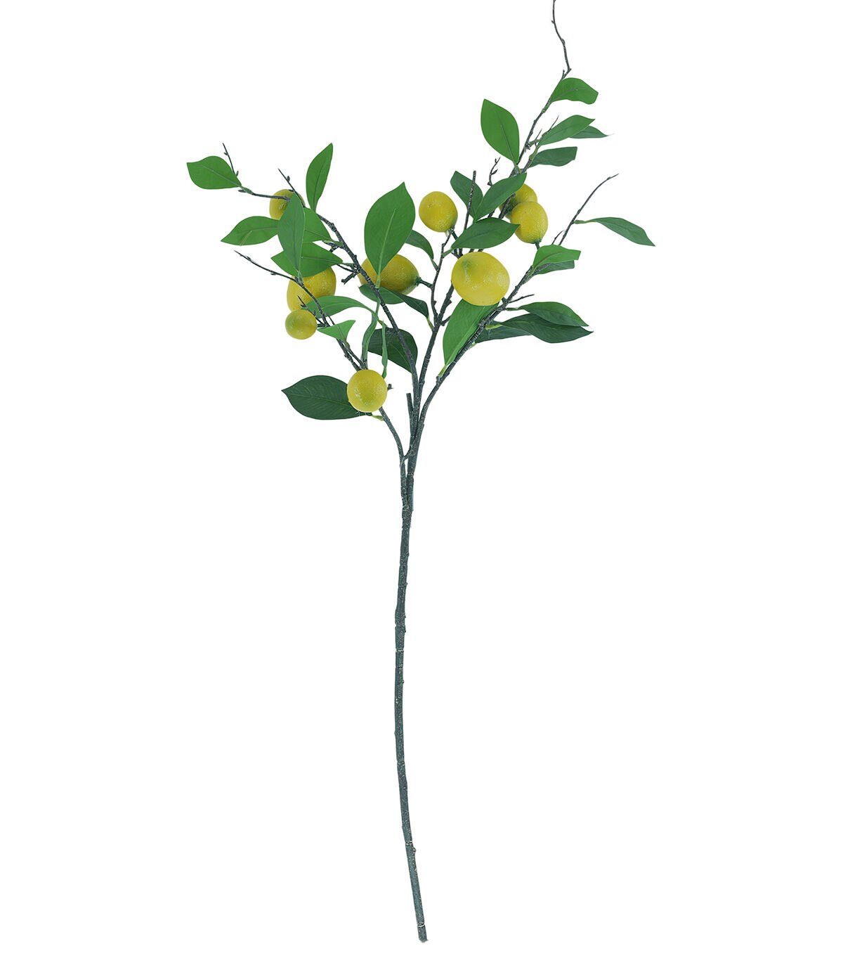 Give your guests a warm welcome by embellishing your entryway with the Spring Yellow Lemons & Leaves Stem by Bloom Room. This decorative stem is made of faux lemon in a bright yellow hue and leaves in green. It looks real and will blend well with your spring decor. You can display it in an oversized spherical floor vase for a stunning look.