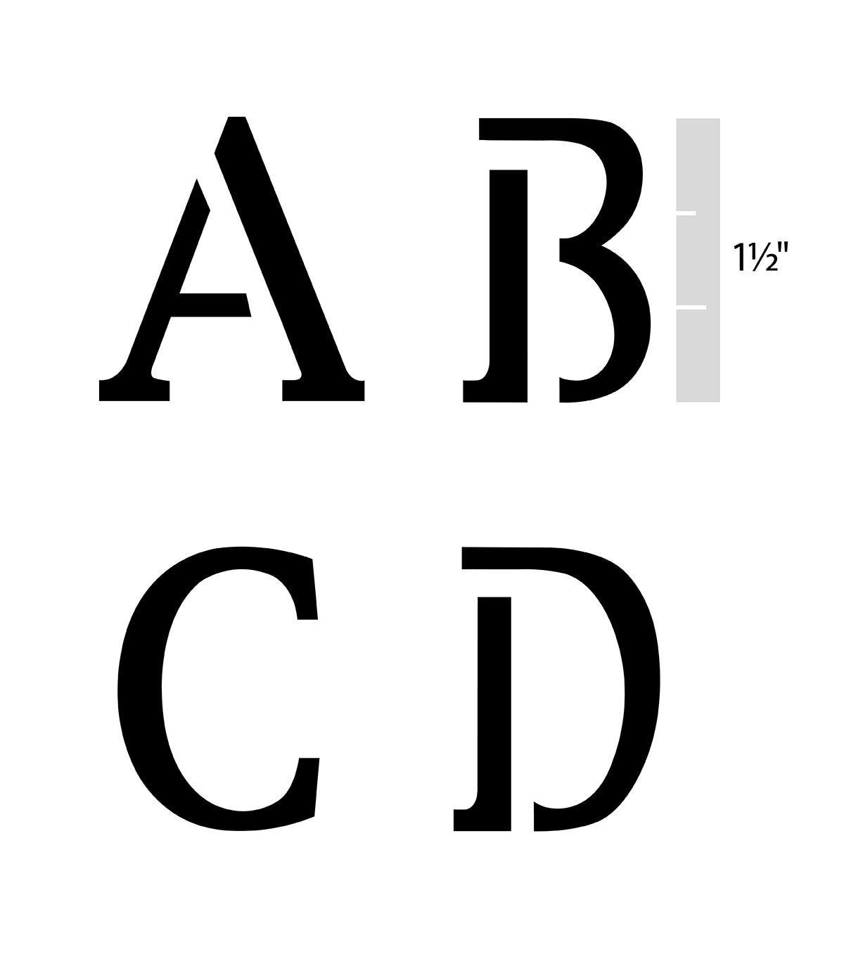 - Letter Size: 1.5" tall Stencil Size: 3.5" x 4.5"