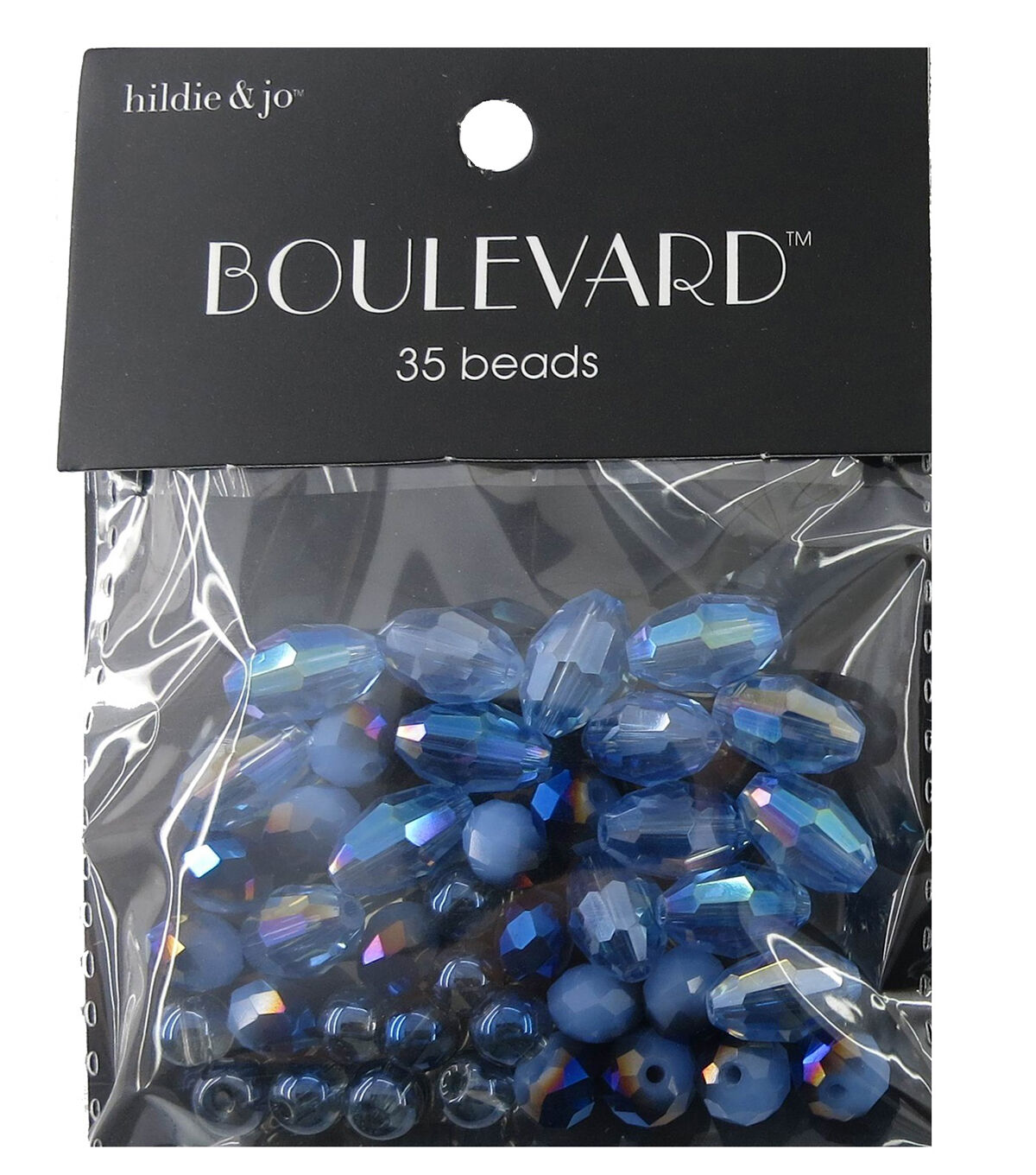 Design charming looks for your handmade DIY and jewelry-making projects using the hildie & jo Boulevard Mixed Glass Beads - Blue. This pack contains 35 beads made of glass in oblong and round shapes. These beads sport shades of blue and some of them come with a faceted finish. They are great for craft projects, garment embellishments, hair decorations and a lot more.