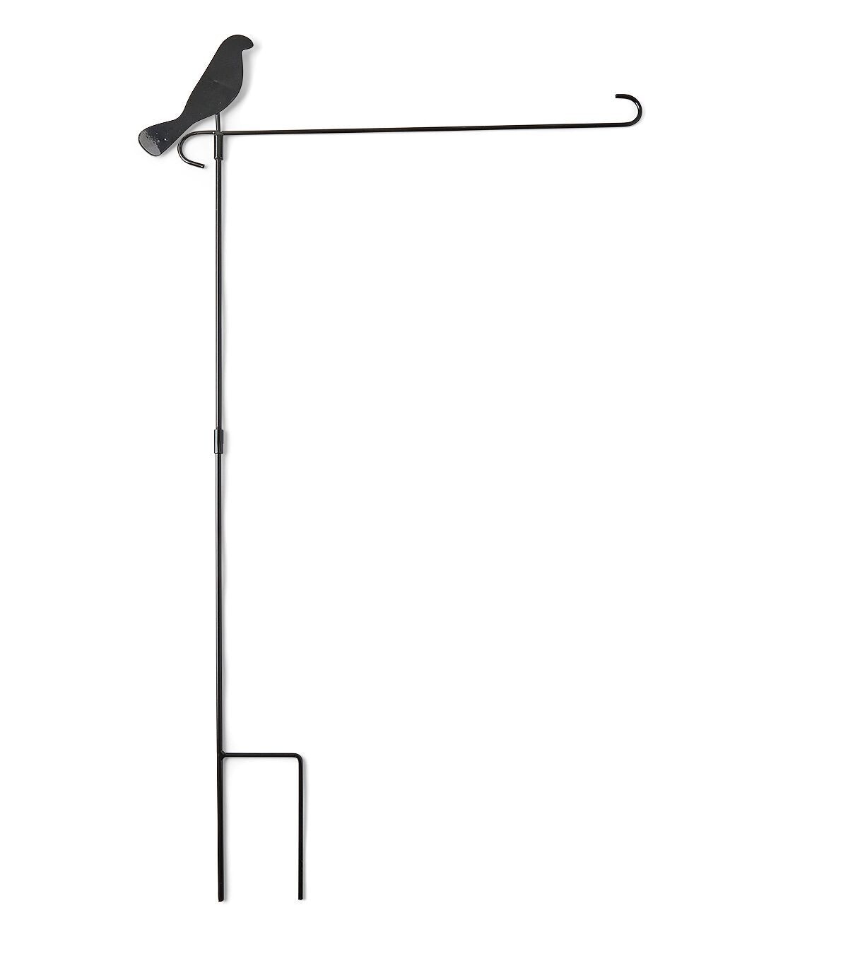 Flaunt spring-themed flags in style using the Spring Silver Iron Flag Holder by Place & Time. This iron flag holder will make a lovely addition to your front yard garden this season. It is designed with a bird accent at the top for visual charm. Hang your favorite seasonal flag to create a delightful display.