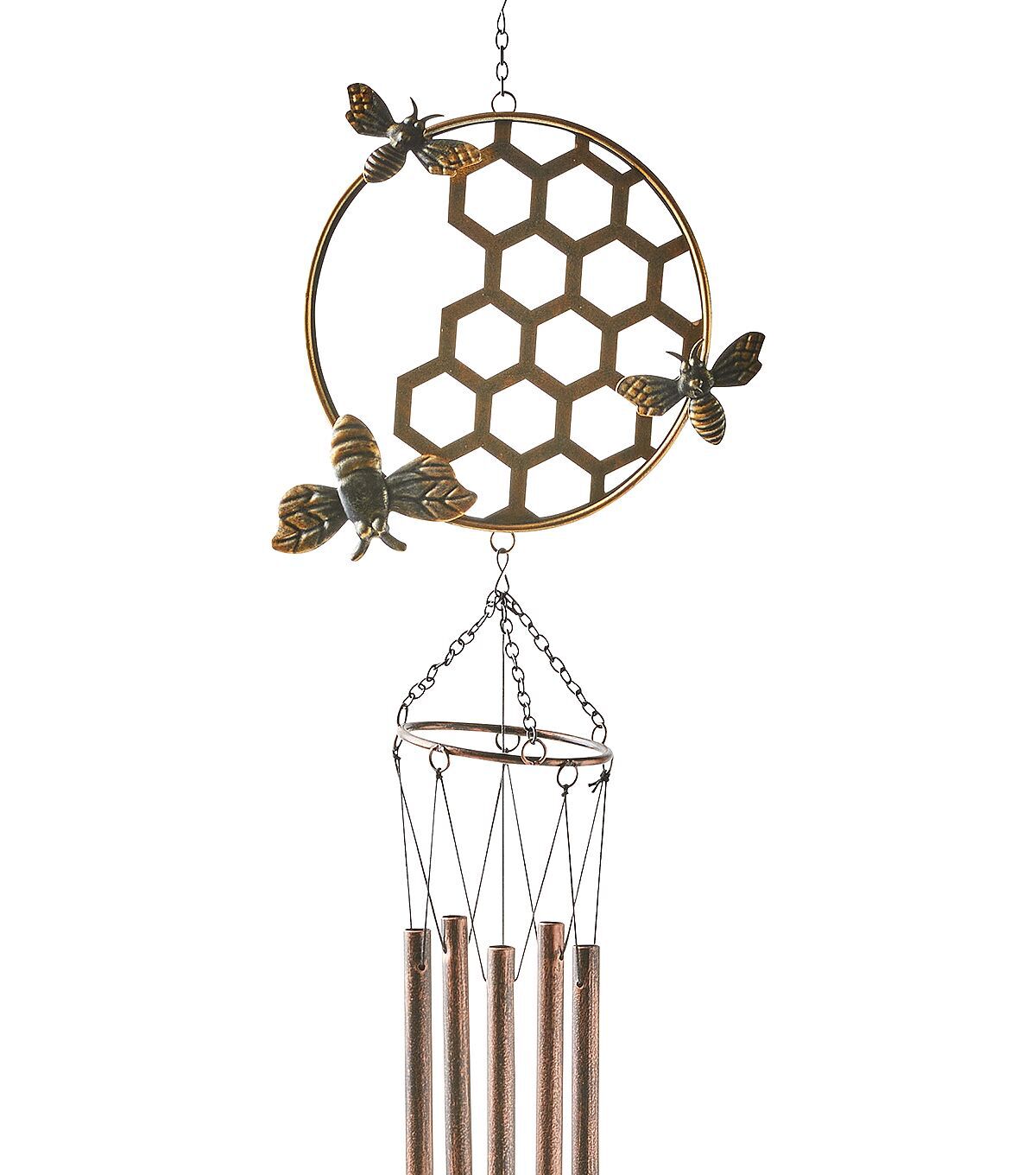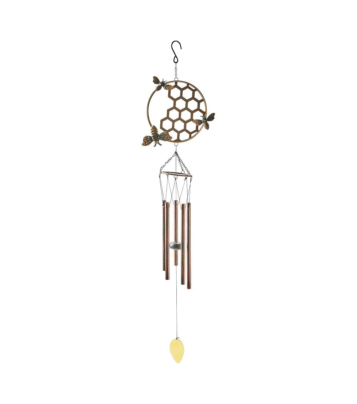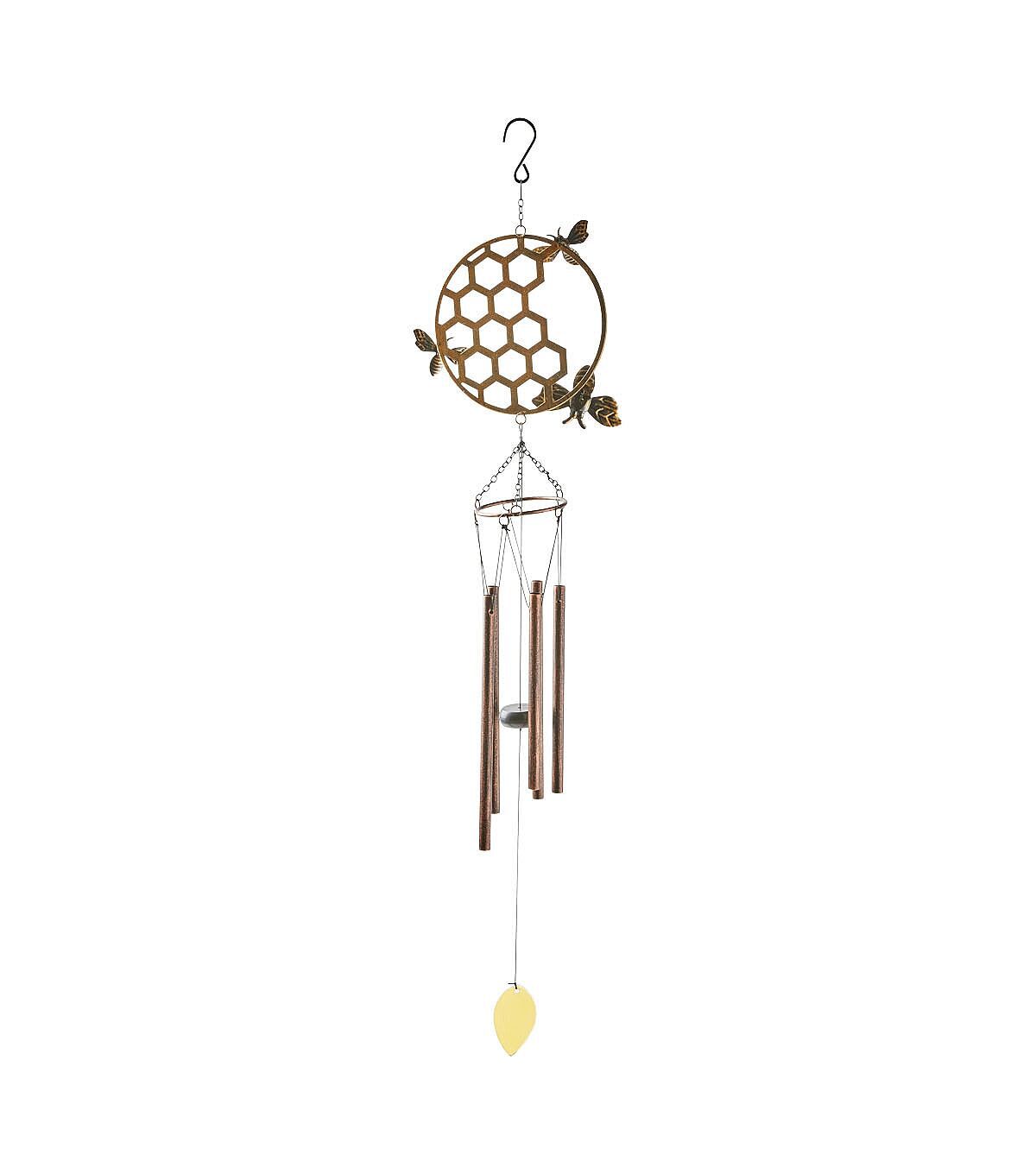 Lend a unique look to your front porch with the Spring Glass Honeycomb With Bees Windchime by Place & Time. It is designed with a circular accent resembling a honeycomb with bees. This wind chime will perfectly complement your spring-themed home decor. You can also display it inside your home by a window to enjoy the soothing chime.
