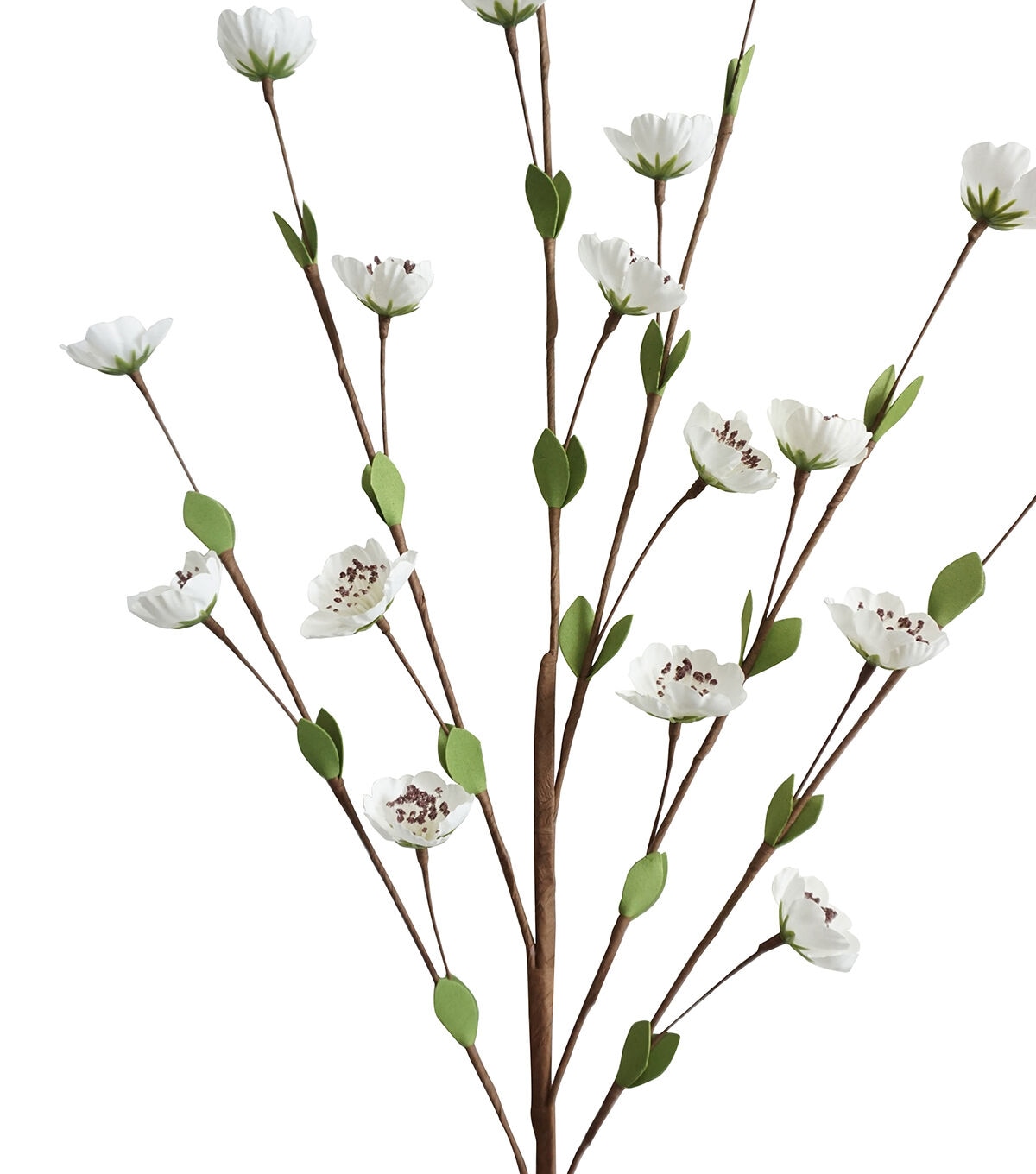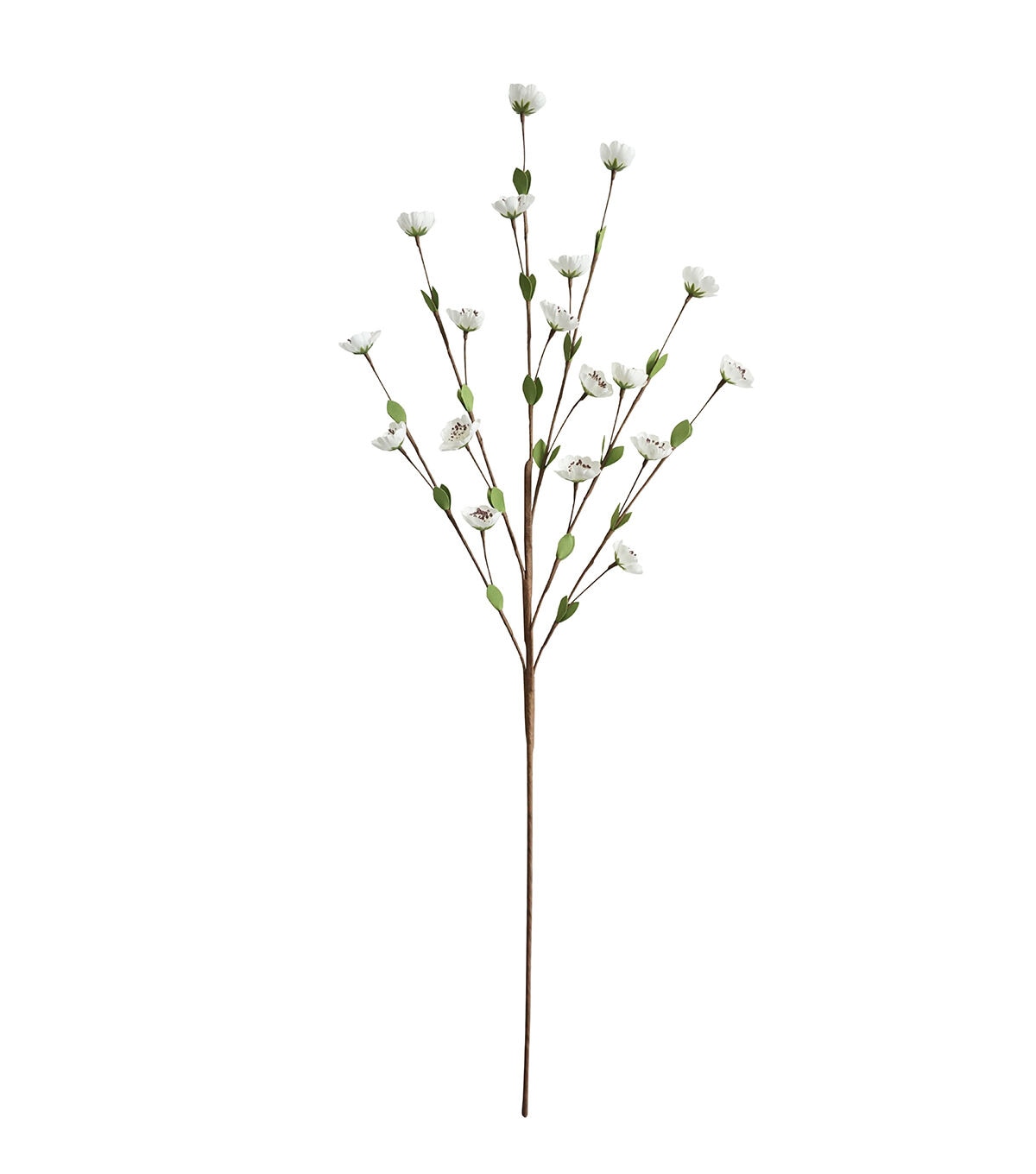 Complete your seasonal home decor in style using the Spring White Cherry Blossom Stem by Bloom Room. Bearing faux cherry blossoms in a lovely white hue and green leaves, this decorative stem will be great for display in your living room. Showcase it on its own or team it with colorful floral stems to create a stunning accent piece for the entryway.