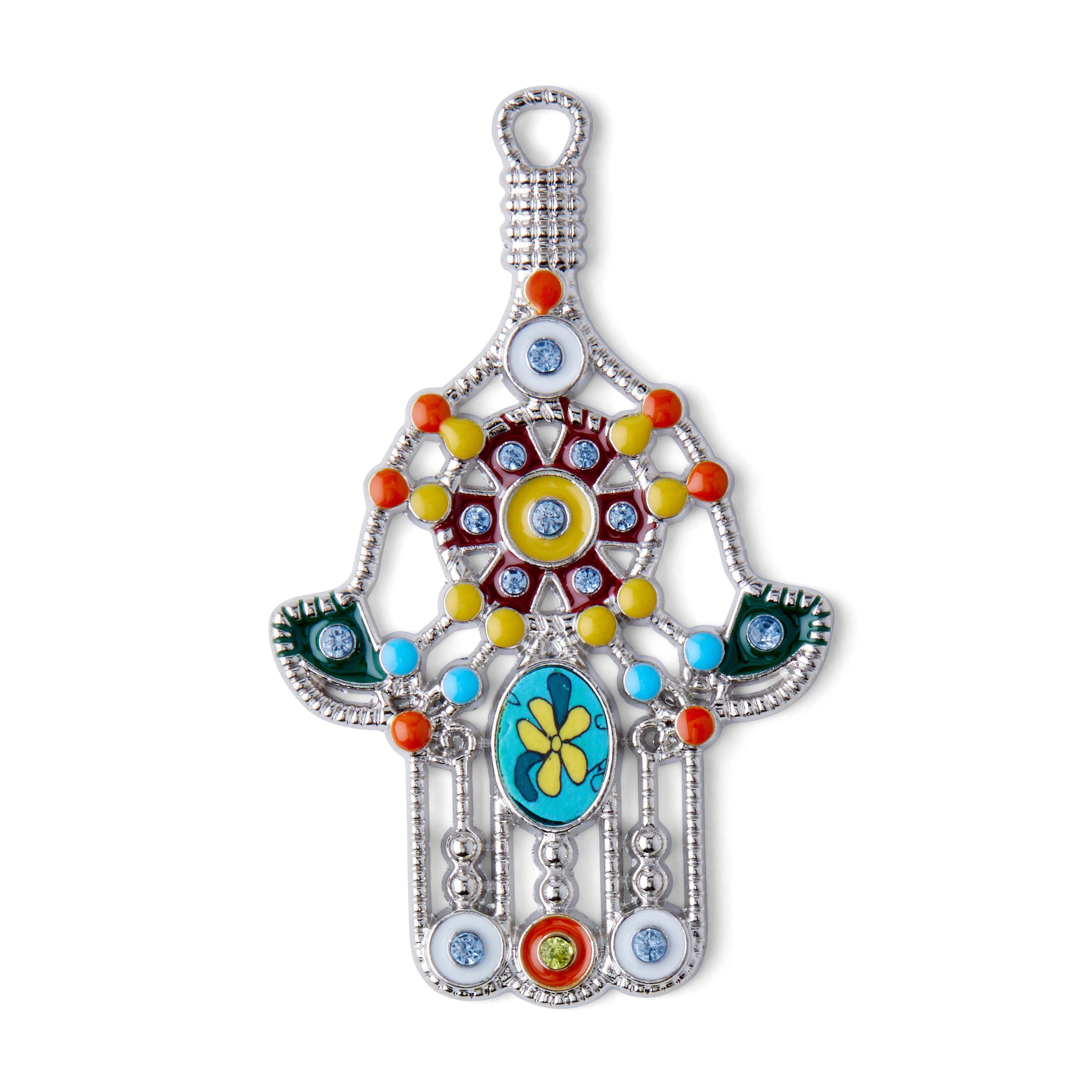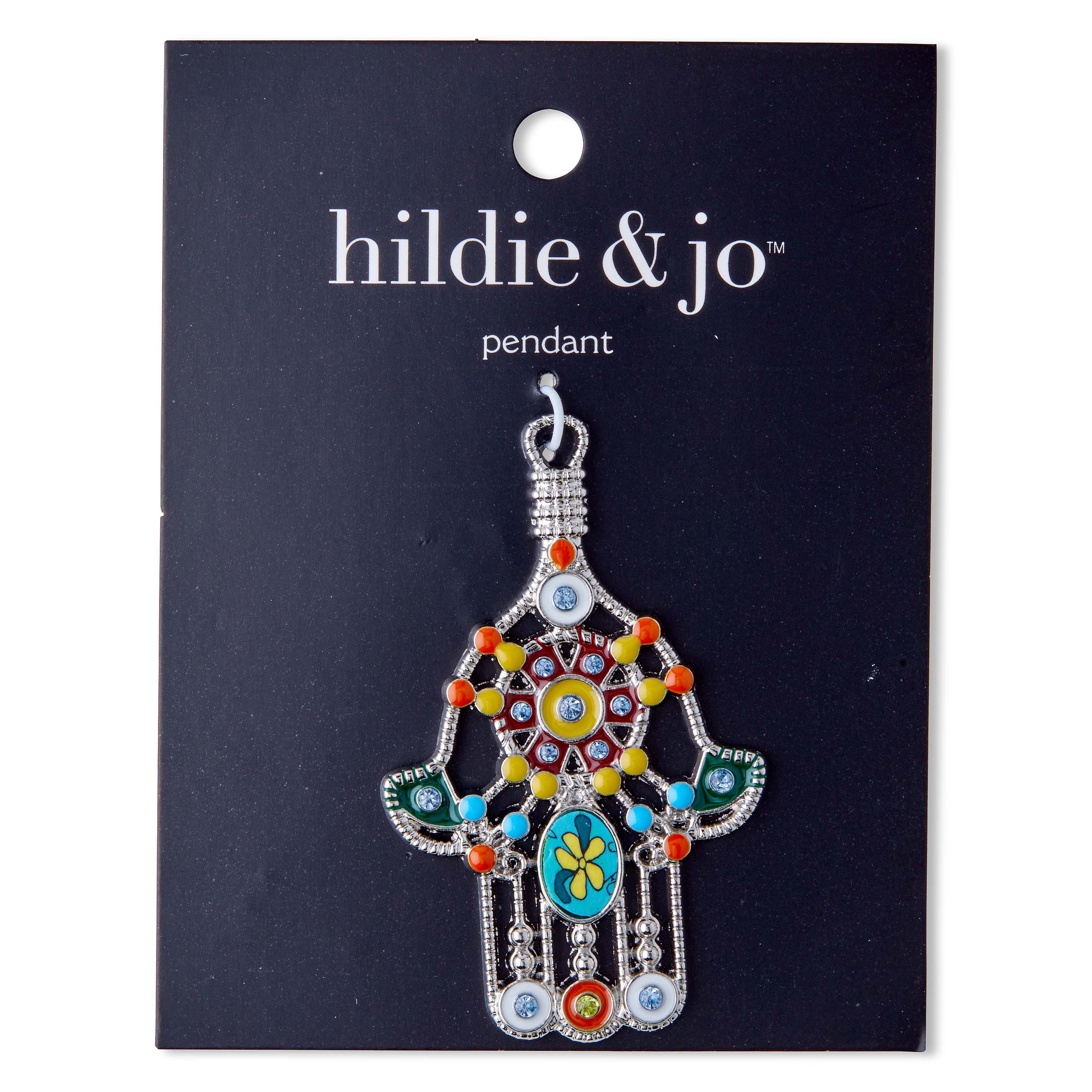 37mm x 58mm Silver Hamsa Hand With Enamel Pendant by hildie & jo