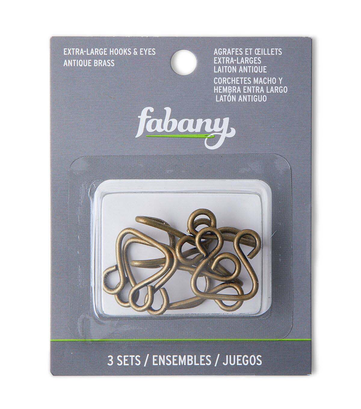 Made of durable brass, these extra-large hooks and eyes are built to last. Whether you're creating a one-of-a-kind wedding gown or a stylish blouse, you can trust Fabany's hooks and eyes to hold up to repeated wear and tear.