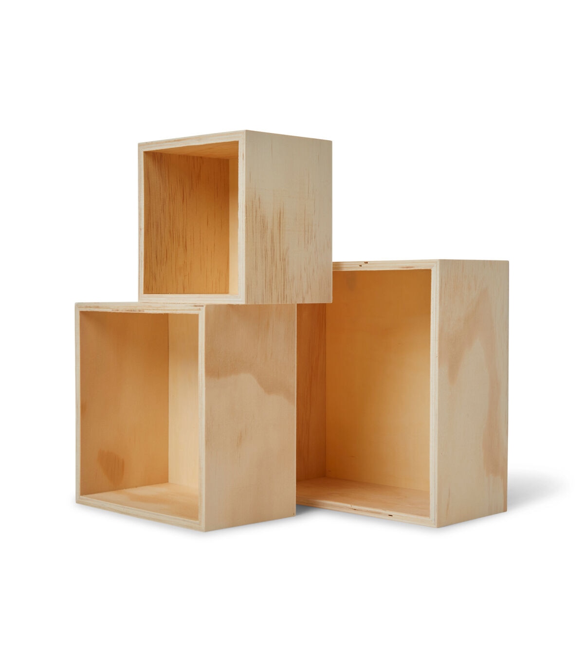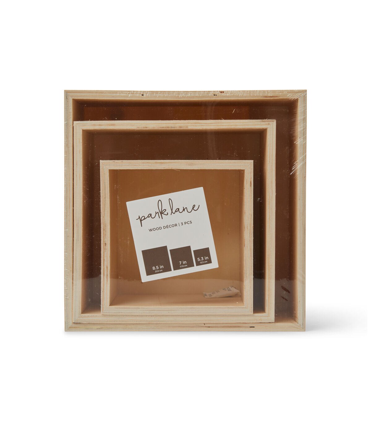 Create unique decor accents for your home using the Park Lane Wooden Square Boxes. This pack includes three unfinished square wooden boxes. Paint them in your favorite colors and use them to create tabletop displays. You can also team them with flower vases, candles and more to create a display.